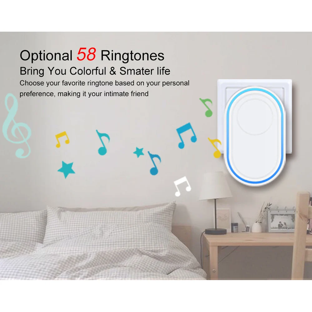 * Внутренний дверной звонок Хост сигнализации подключи и работай, нет необходимости в батареях, низкое энергопотребление. Наружная кнопка дверного звонка с функцией защиты от взлома.
