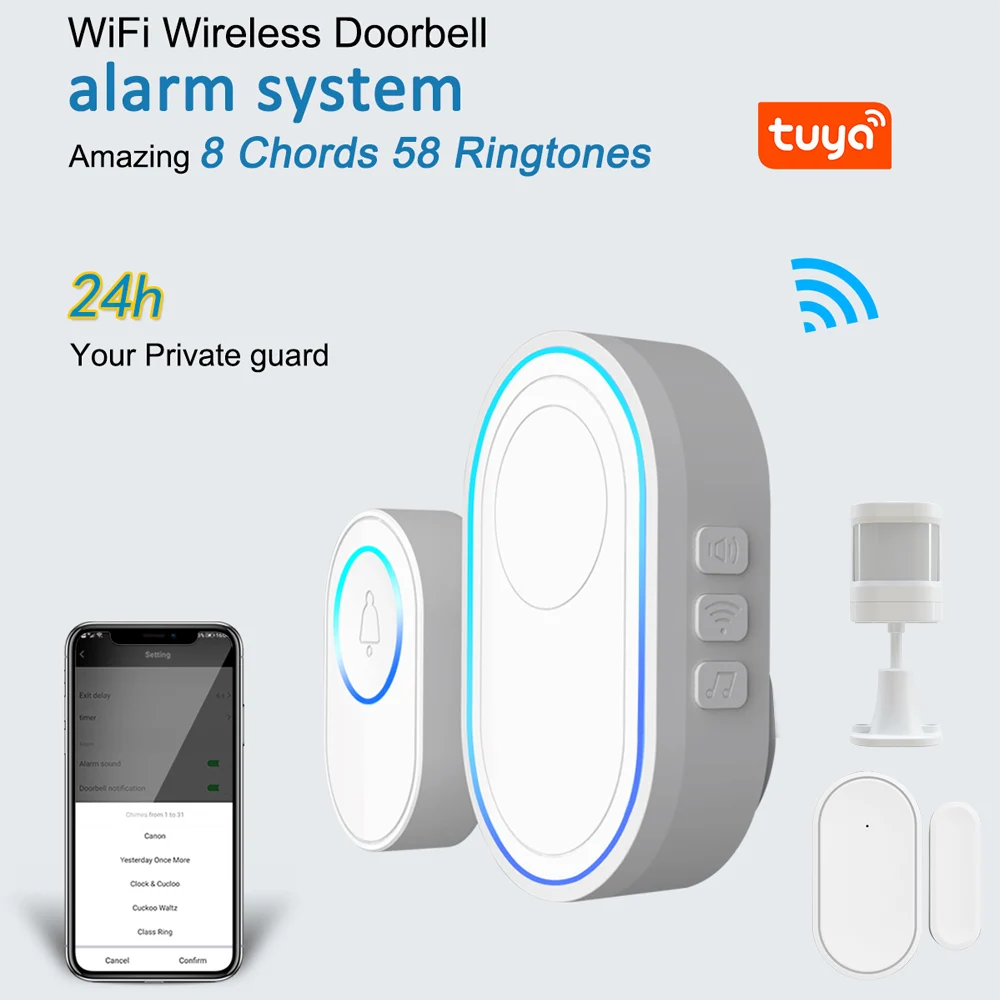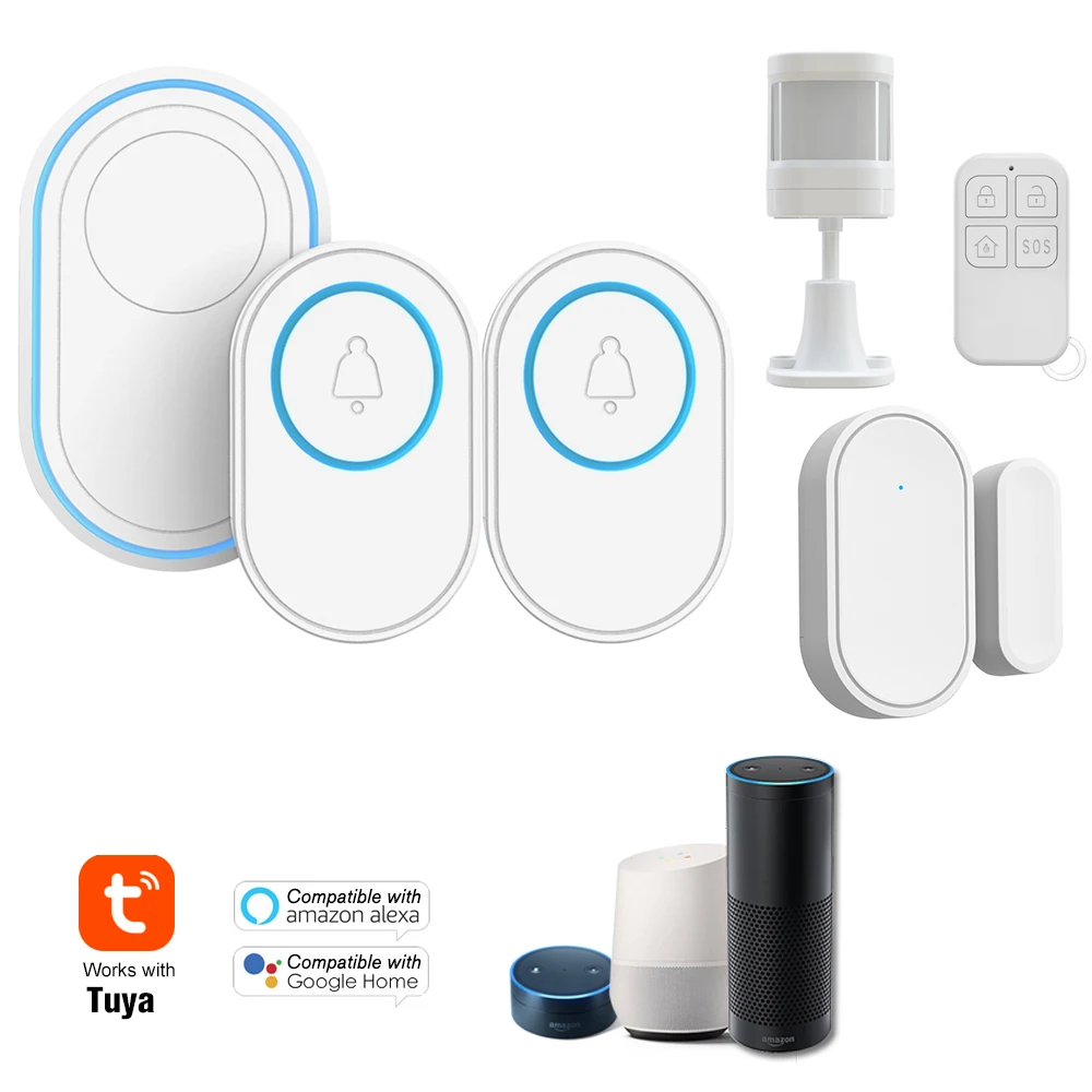 Эта система сигнализации содержит Хост сигнализации (с функцией дверного звонка), кнопку дверного звонка, датчик PIR, датчик двери, пульт дистанционного управления. Поддержка дистанционного управления Tuya APP. Он совместим с Amazon Alexa, Google Assistant для голосового управления. Вы можете использовать эту систему сигнализации через телефон или пульт дистанционного управления. Когда вор пришел, срабатывает датчик двери или датчик движения PIR, Хост сигнализации сделает автоматический циферблат или отправит уведомление приложения, чтобы напомнить вам, таким образом, это поможет вам уменьшить потери собственности и гарантировать безопасность вашего дома. С функцией дверного звонка вы никогда не пропустите важных посетителей.