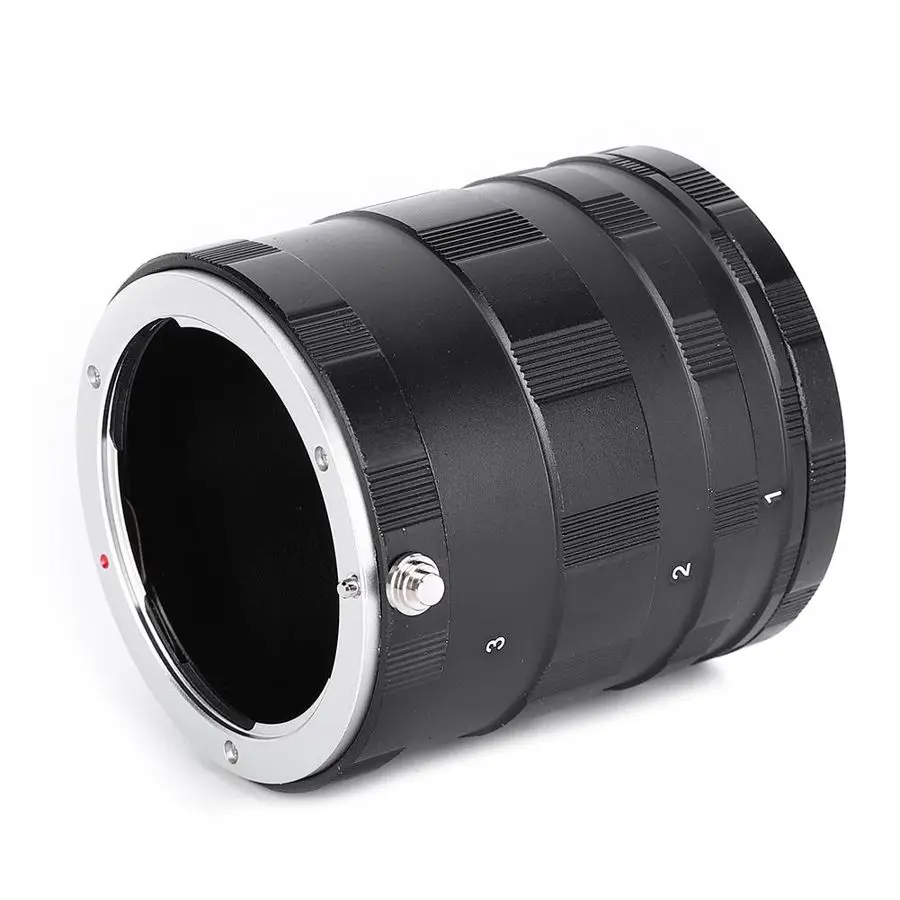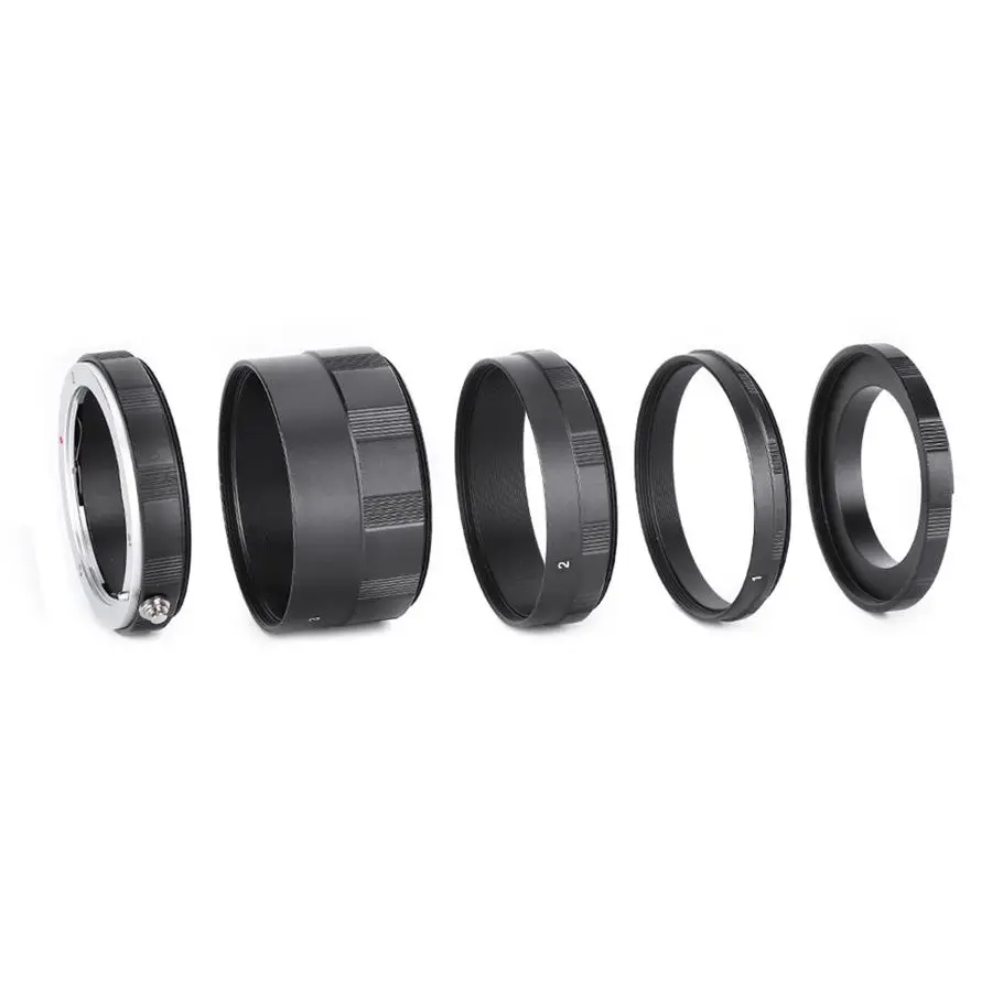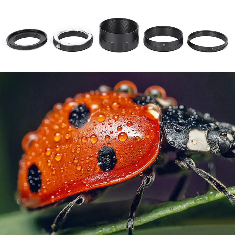 1. Соединяющее кольцо крупным планом, установленное между объективом и корпусом, удлиняет корпус трубки объектива для достижения эффекта ультра макросъемки с принципом сильфонной фотографии.