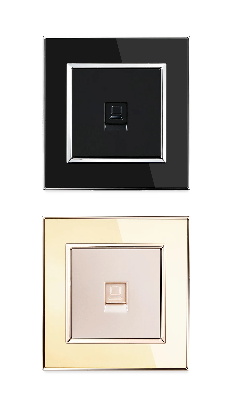 UNKAS Роскошная зеркальная акриловая панель RJ45 Интернет компьютерный Разъем настенный порт розетка 86 мм * 86 мм слабая электрическая розетка