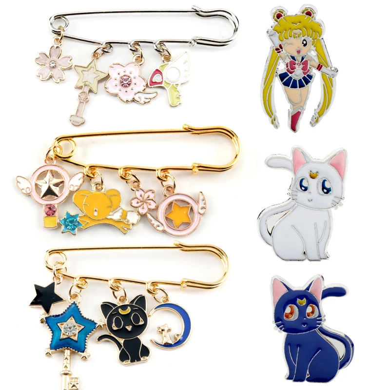 Звезда Луна/визитница Сакура брошь, эмалированный штифт Мультяшные аниме ювелирные изделия застежка на булавке броши и булавки для рюкзака для девушек и женщин безопасные булавки