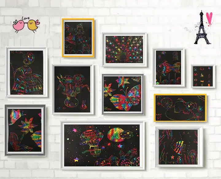 Оптовая цена детский сад Diy картина подарок украшение стены черный фон царапины Живопись бумага A0500L