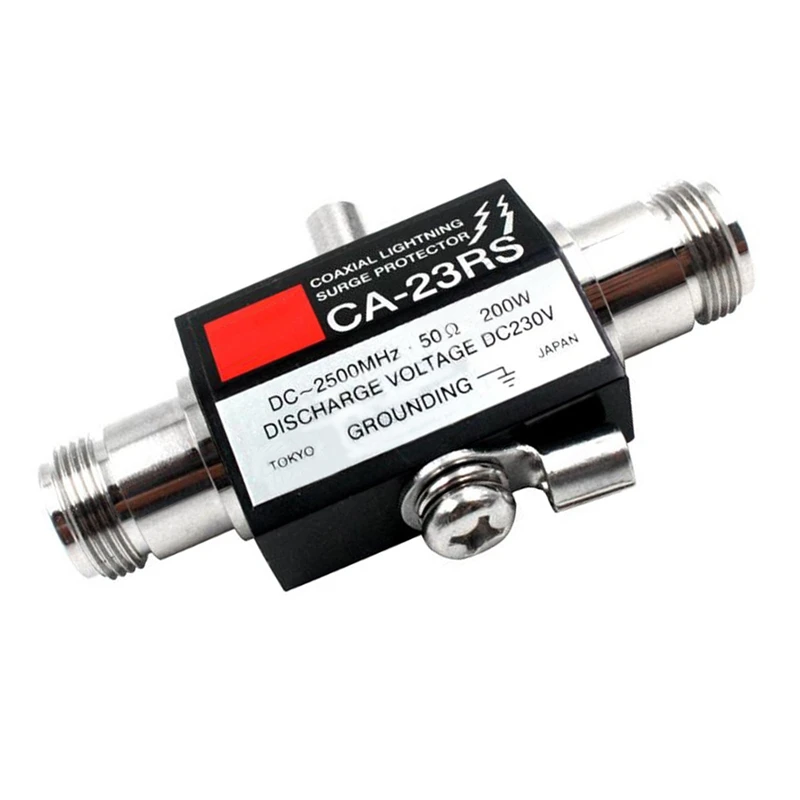 2 при использовании высокой антенной башни заземлите основание башни толстым проводом (Е. Г., медный провод. Более 30 suquar мм или алюминиевый провод, более 50 квадратных мм, в поперечном сечении). Закрепите коаксиальный молниеразрядник под аненной, и заземлите амортизатор через башню, в этом чехле приложите клейкую ленту к амортизатору для погодоустойчивости.