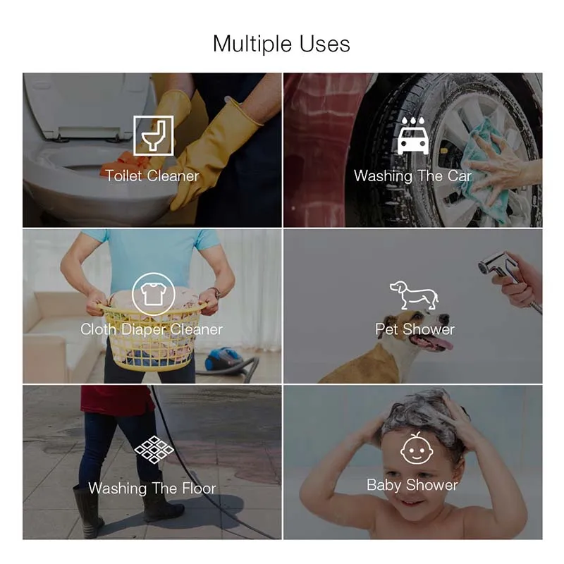2. Больше функций. Используется в качестве пылесоса для унитаза, распылителя биде, даже используется для использования d для ванны, душа, раковины или смесителя или даже водяного шланга, чтобы дать вашей собаке душ.