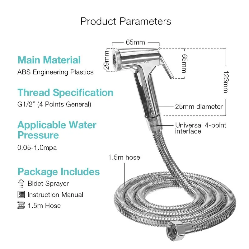 3. Ручной туалетный опрыскиватель изготовлен из сверхмощных АБС-полимеров, которые не протекают и не поддаются высокому давлению и избегают взрывов.