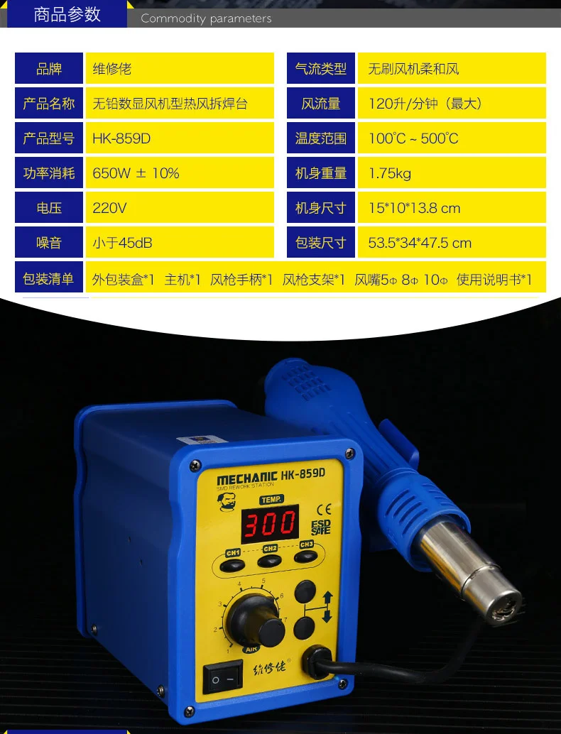 12 комплектов Механическая HK-859D паяльная станция с цифровым дисплеем и функцией хранения данных