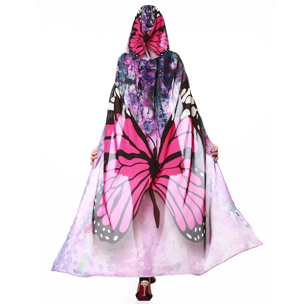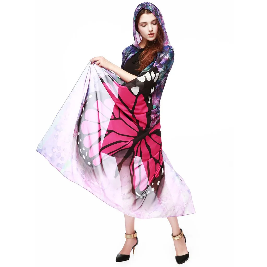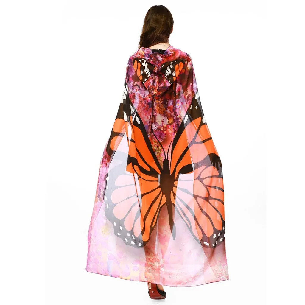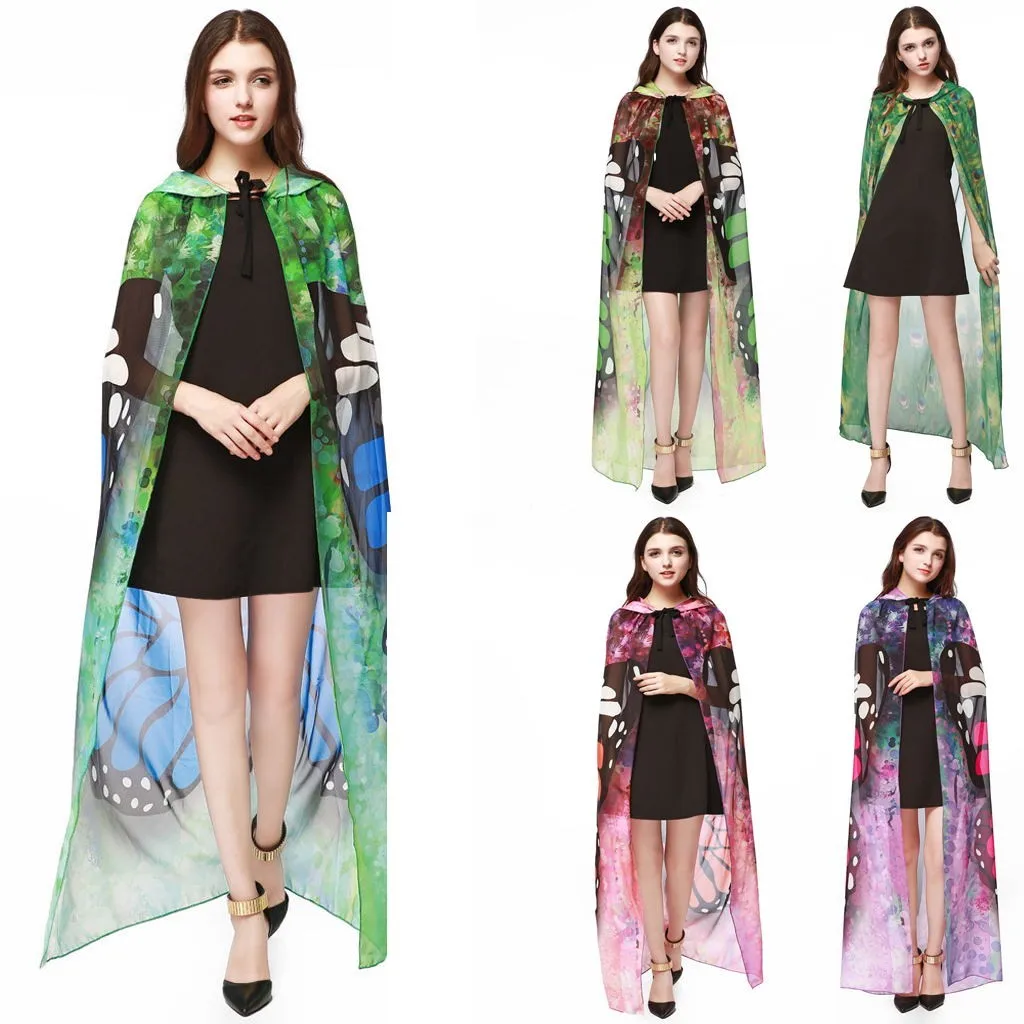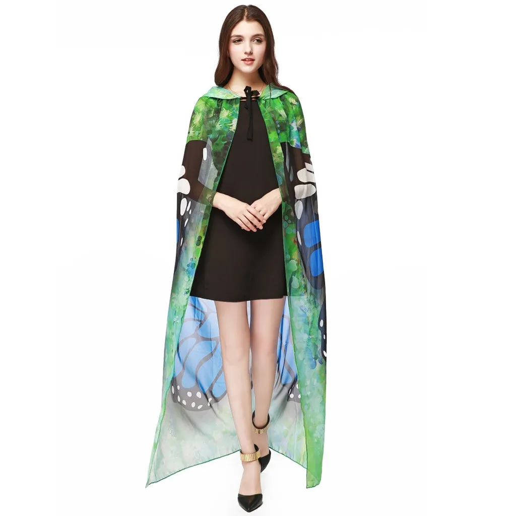 Женская шифоновая накидка с капюшоном и принтом бабочки на Хэллоуин