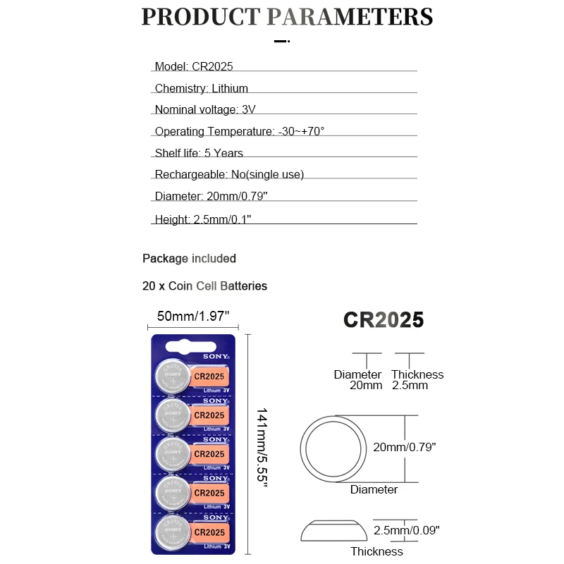 Высококачественные батарейки CR2025, батарейки-таблетки, большая мощность для миниатюрные устройства.