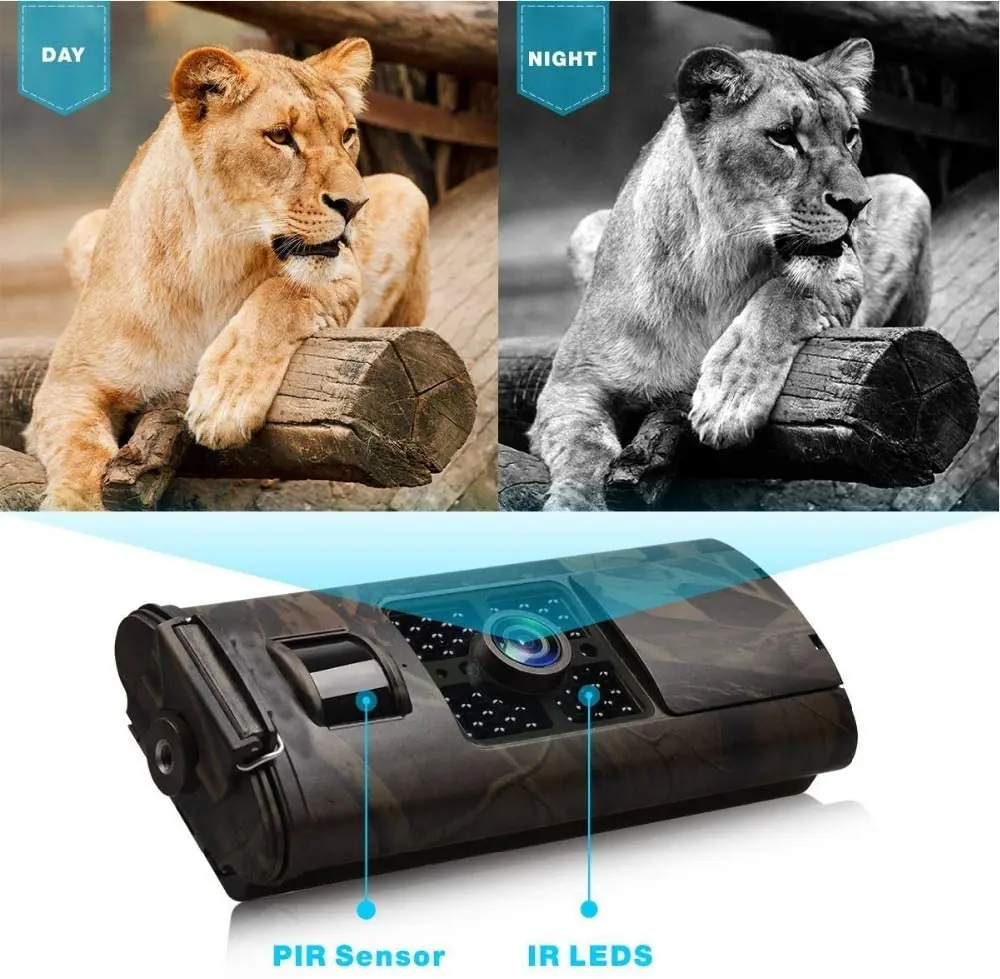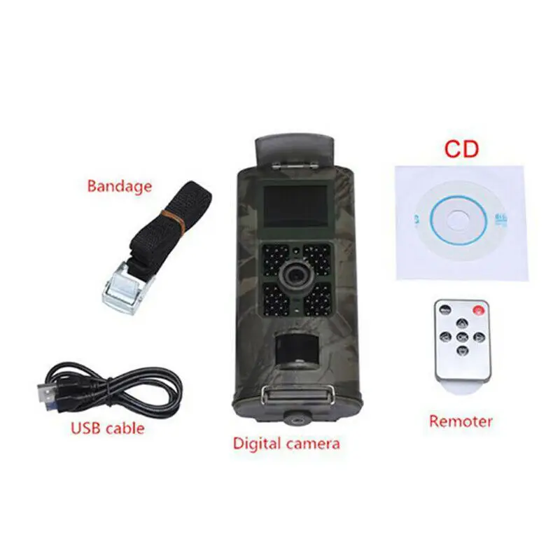 Description: 100% brand new and high quality This camera is a surveillance camera working automatically. It can be triggered at once by any movement of human (or animals) in a certain region of interested (ROI) monitored by a high sensitive Passive Infrared (PIR) motion sensor, and then automatically captures high quality pictures (up to 16M pixels) or records 1080p HD video clips. At sunrise the unit begins to take color photos and video until there is insufficient light (dusk) when it begins to take infrared (monochrome) photos and video. It is easy to use, there is a 2.0 inch colorful LCD display on camera. It is resistant against water and snow for outside uses. 20 meters remote control. Specifications: Memory:TF Card to 32GB IR Filter:Full Automatic IR Filter TFT Display Screen:2.0 inch LED:Black Invisible 940nm PIR Distance:High/Normal/Low PIR Sensor Sight Angle:120 Degrees PIR Sensing Distance:65ft/20m Number of IR LED:32 LEDs Trigger Speed:0.5 second Triggering Interval ::1 /5/10/30s/mins (default 1 sec) Selectable Image Resolution::16MP/12MP/8MP Multiple Photo on one detection:1/3/6/9 Video Resolution:1080P/720P/VGA File Format:JPEG/AVI Exposure:Auto Device Serial No:4 digits and 26 alphabets set by yourself Time Lapse:30/60/90/120/240mins Periodic shot:1Second~24Hours Stand-by time:6Months Operation Temperature:-30 ~+70℃/-22~+158℉ Power Supply:8xAA battery or 4*AA battery Water proof:IP54 Security authentication:FCC,CE,RoHS