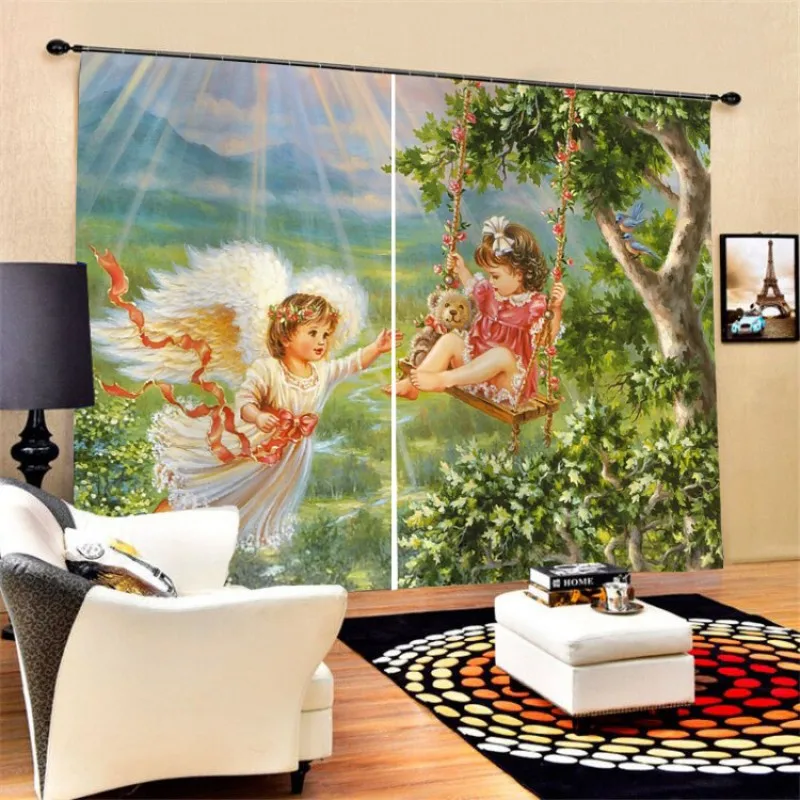 Занавески на окна ангела для детей, девочек, спальни, Мультяшные сказочные оконные шторы, 2 панели, декор для гостиной, домашний декор, на заказ