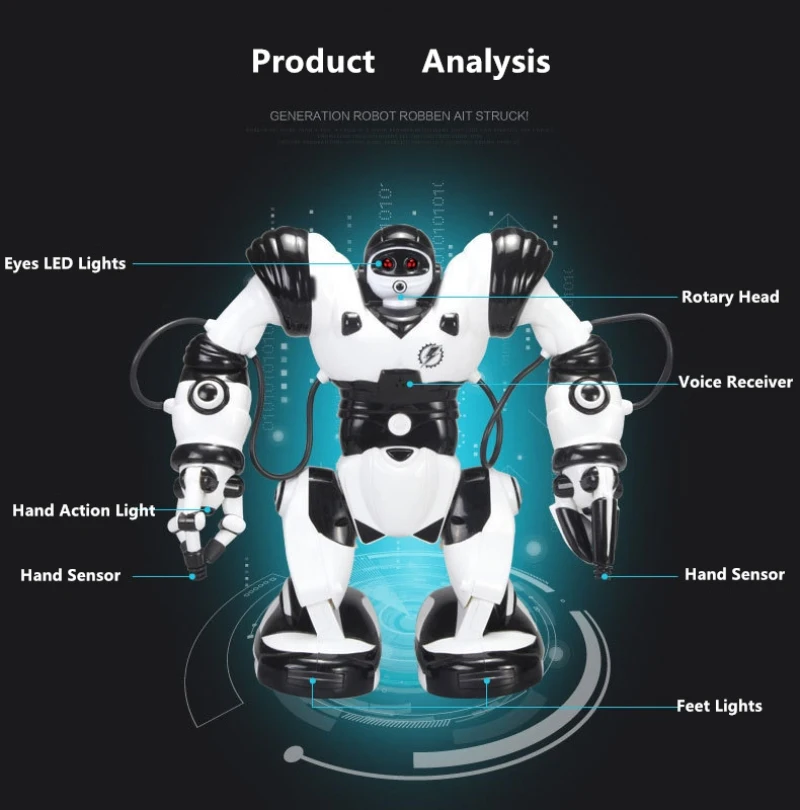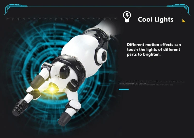 Сенсорное распознавание: сенсорные датчики устанавливаются на передней и задней стороне рук и ног, прикасайтесь к ним, и робот выполняет функцию в соответствии с запрограммированной программой.
