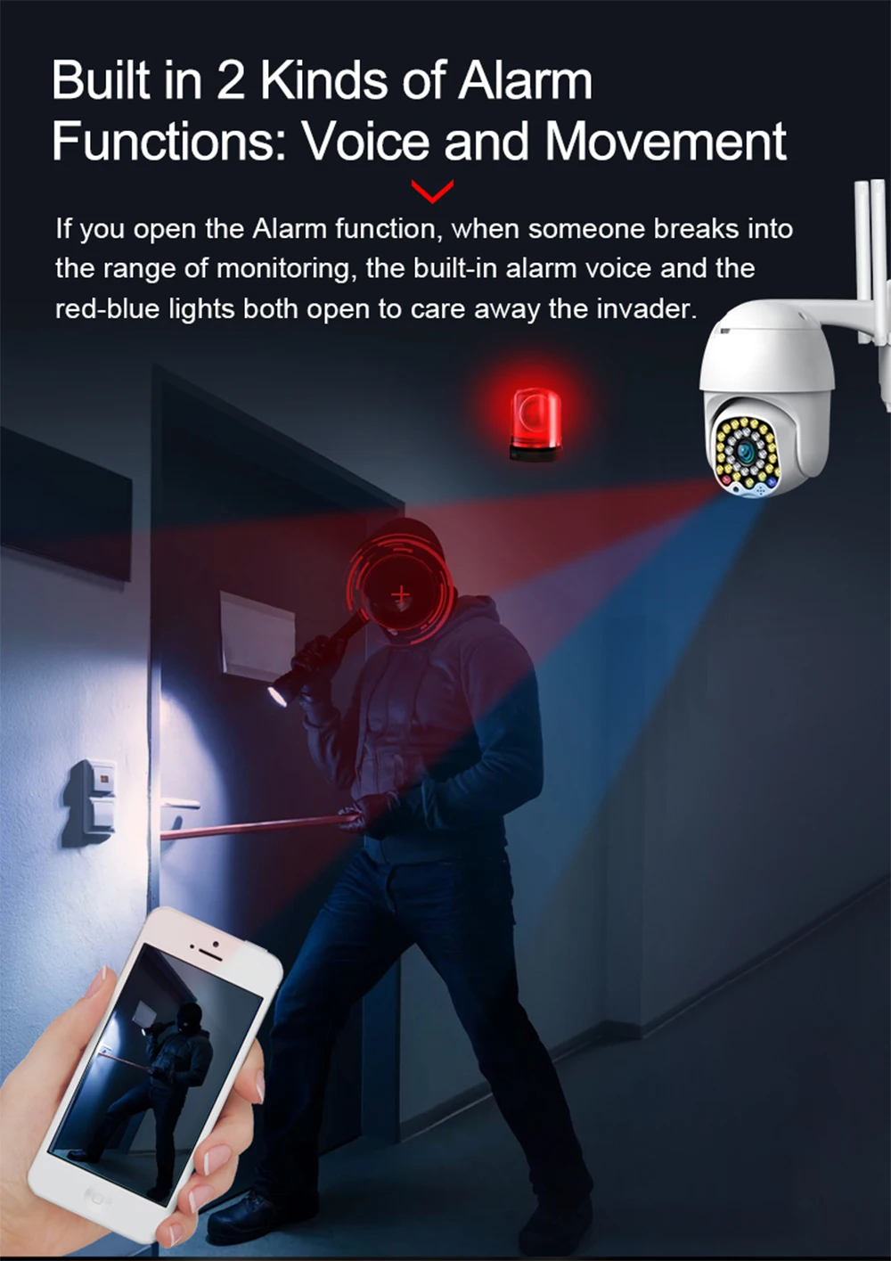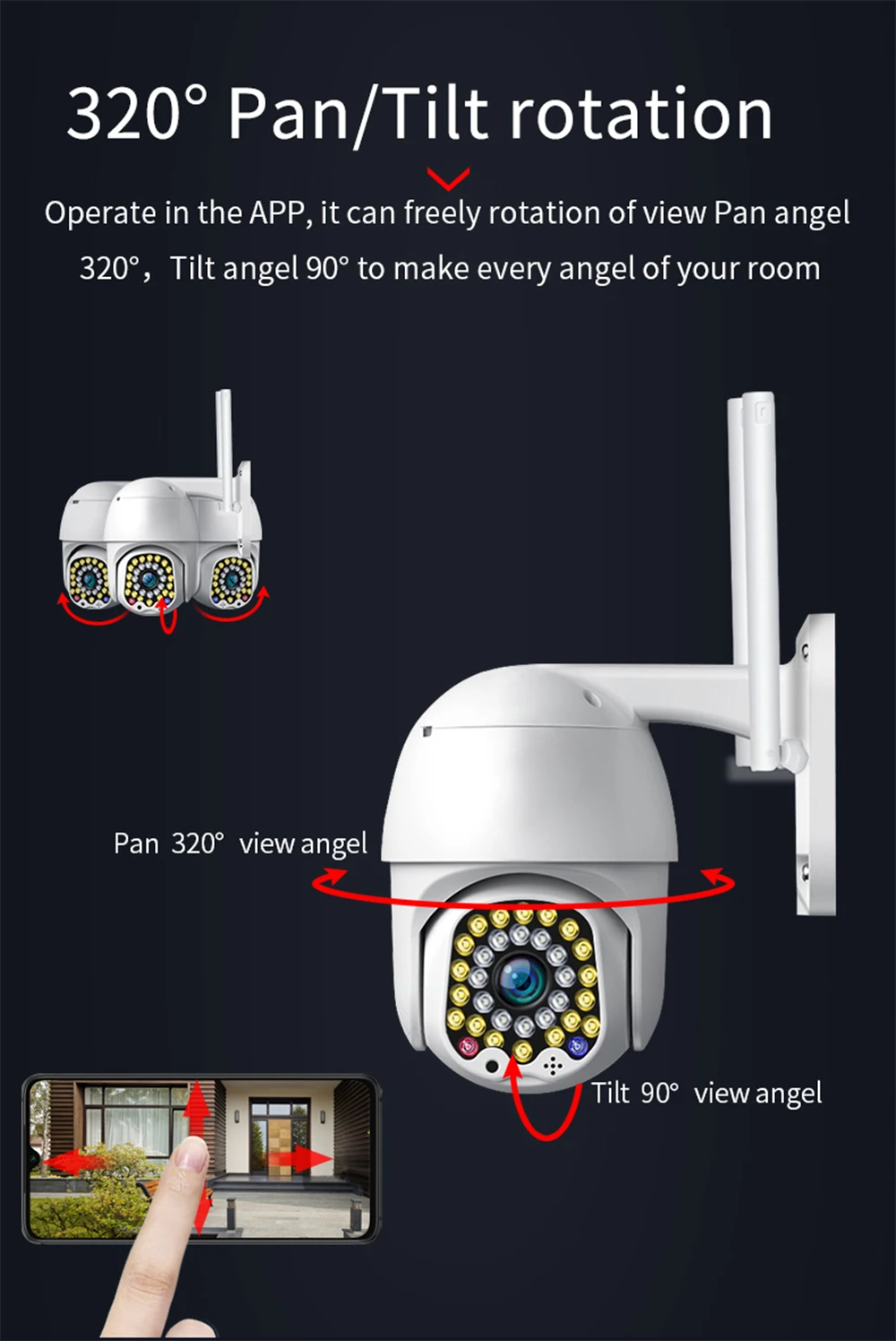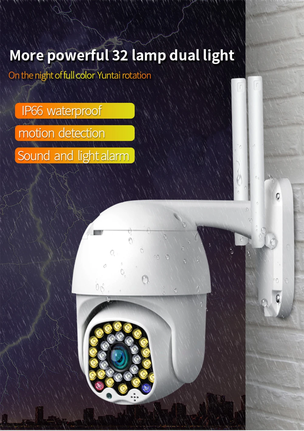1. Красный синий светильник Когда кто-то врезается в зону стрельбы ночью. Он будет мигать красный и синий светильник, чтобы поставить под удар ЗАХВАТЧИКА. 2. Умный двойной светильник Встроенный белый светодиодный и ИК-светодиодный, мониторинг движущихся объектов, автоматическое освещение. Это впечатляющее маленькое оружие для борьбы с преступностью. 3. Панорамирование 320 ° Наклон 90 ° пульт дистанционного управления 320 ° PTZ панорамирование/наклон вращение по вертикали 90 ° может контролировать угол вращения через приложение YCC365 Plus. 4. 4.0X цифровой зум Камера поддерживает цифровой зум 4X, Нажмите и удерживайте экран обеими руками, чтобы увеличить/уменьшить масштаб. 5. Водонепроницаемый IP66 Защита от суровых погодных условий и окружающей среды. Полная защита, чтобы избежать проникновения порошка, сильный водный спрей не может вторгнуться в машину. Камера отличается погодой и прочностью. 6. Двусторонний разговор аудио Оснащен встроенным микрофоном и динамиком. Вы можете удаленно просматривать собак, семьи, сотрудников и т. д. и общаться с ними в любом месте и в любое время. IP Водонепроницаемый 7. Сигнализация обнаружения движения Когда кто-то попадает в зону съемки, обнаруживается движение, и он нажимает уведомление на ваш мобильный телефон. 8. Несколько способов подключения (Wifi и Проводная сеть и режим AP) Поддержка проводного режима и беспроводного режима, с двойной антенной высокой интенсивности 5 дБ, сигнал стабильный и не выпадает. Вы все еще можете подключиться к AP wifi камеры, чтобы просмотреть его около 20 м. 9. Tf-карта и Облачное хранилище Поддерживает TF карту до 128 ГБ и предоставляет Облачное хранилище (необходимо оплатить дополнительные расходы), вы можете выбрать либо или оба, чтобы сохранить ваши записи и избежать риска потери видео с карты. 10. P2P удаленный мониторинг Поддержка Android / iOS мобильный телефон приложение YCC365 plus, планшет, компьютер P2P broswer просмотр, обмен видео с семьей, как вы хотите.