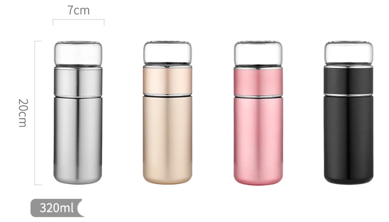 1. Цвет: как показано на фотографии 2. Емкость: 250 мл, 320 мл 3. Размеры (приблизительно): 7 см x 16,5 см/7*20 см 4. Материал: нержавеющая сталь 304 + высокое боросиликатное стекло + пищевой полипропилен + силикагель