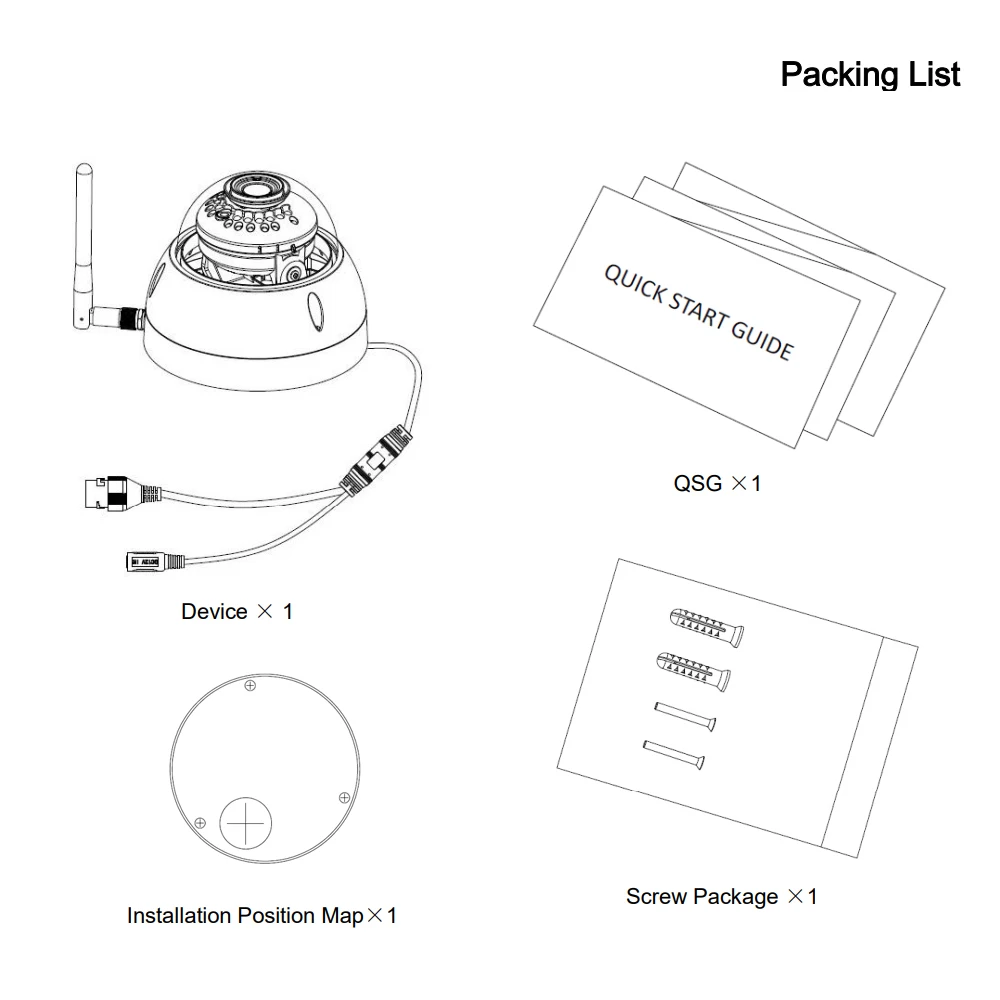 1. Оригинальная 4 МП IPC-HDBW1430E-AW WiFi мини купольная ip-камера * 1 2. Оригинальные аксессуары