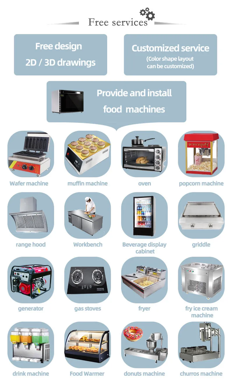 Советы для клиентов:1.0ur тележка может быть применена для seling хот-дог картофель фри, waffe, бутерброды, кофе, гамбургер и т. Д., очень подходит для личного малого бизнеса или нескольких магазинов. У нас есть много стилей уличная тележка для еды на ваш выбор, почти каждая модель может быть использована для продажи различных закусок, И его применение зависит только от внутренней кухонной утвари.2.Для внутреннего оборудования, если вам нужна кухонная утварь или Кастомизация. Пожалуйста, сообщите Lacie, какие закуски вы хотели бы продать внутри, так что наиболее подходящие машины могут быть quipped.3.Логотип и цвет настроены в соответствии с вашими потребностями.