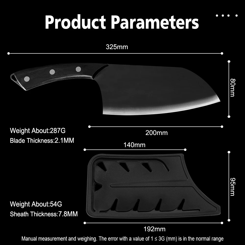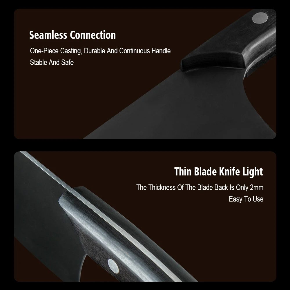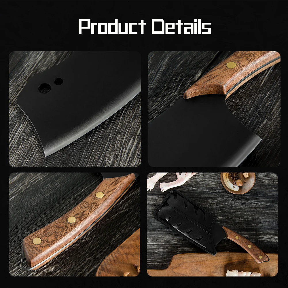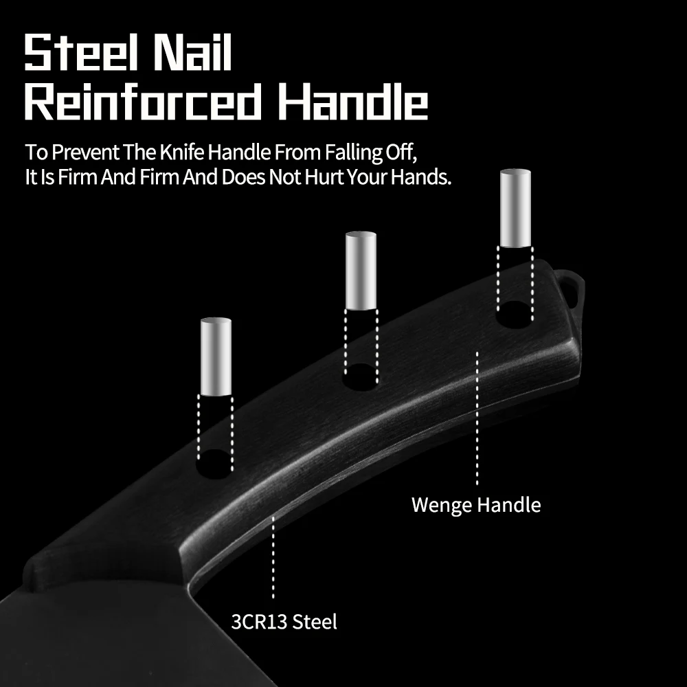 Этот нож мясника шеф-повара изготовлен из нержавеющей стали, ручка и лезвие интегрированы без пайки, что является твердым и долговечным для устранения сломанной ручки