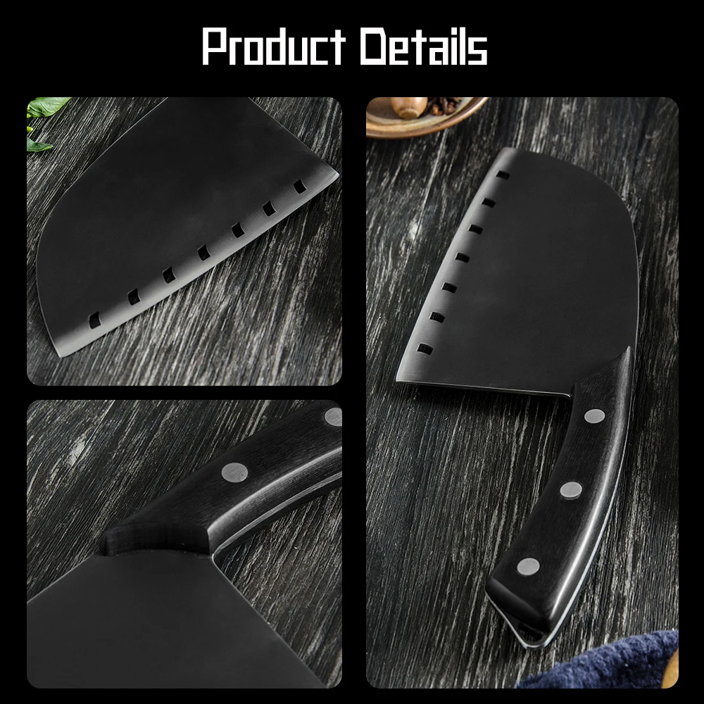 Эргономичная ручка Full Tang предотвращает удобство захвата лезвия и противоскользящий эффект. Кухонный нож мясника-это Великолепная красота, безупречное исполнение эта прочная конструкция с хорошей прочностью, долговечностью.