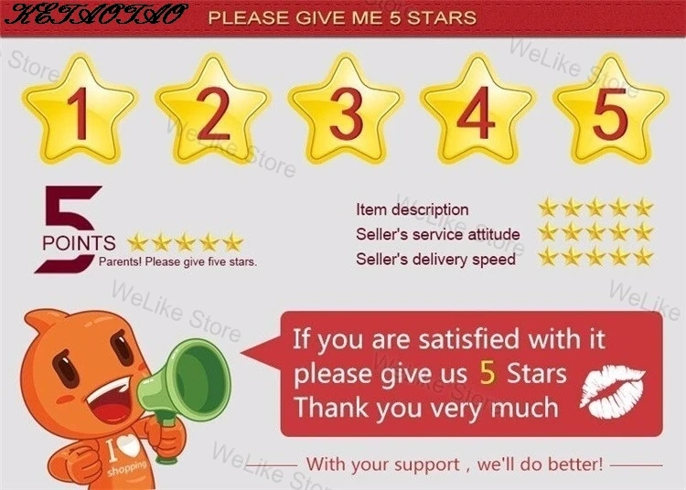 Если вы остались довольны нашим товаром, пожалуйста, оставьте нам положительный Отзывы и пять звезд. Большое спасибо!