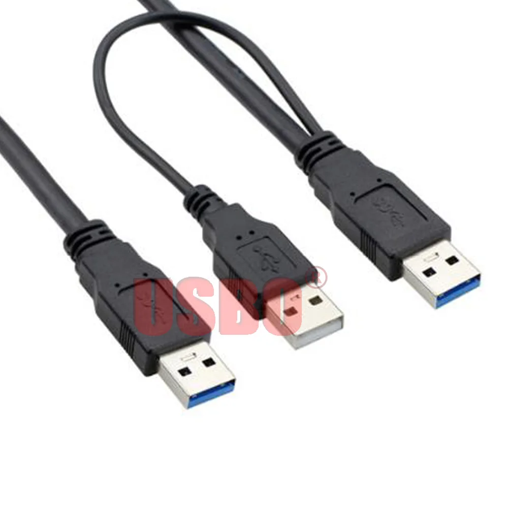 Высококачественный черный 0,6 M USB 3,0 Мужской к USB 3,0 Мужской мобильный жесткий диск кабель с питанием двойной USB кабель