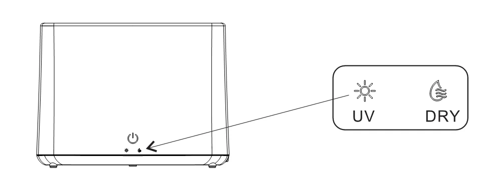 После подключения к сети переменного тока нажмите сенсорную кнопку до 2 секунд, функция стерилизации и сушки может быть выполнена отдельно. Индикатор будет преобразован в другой вариант. Отпустите руку, устройство инициализирует функцию стерилизации или сушки.