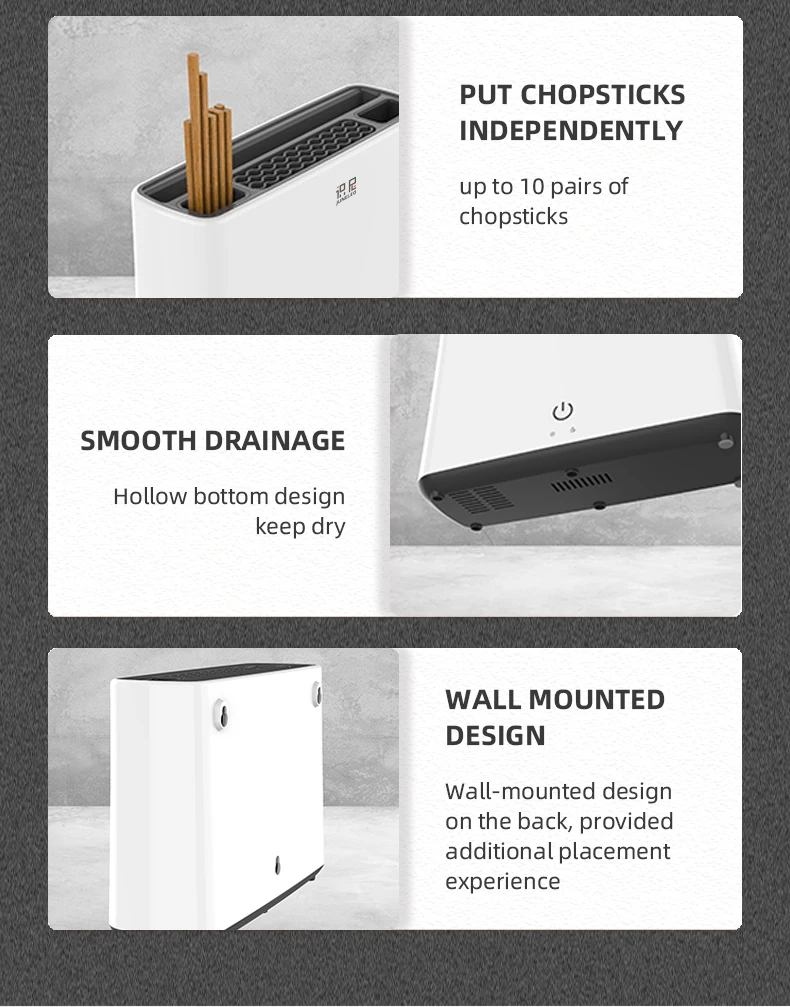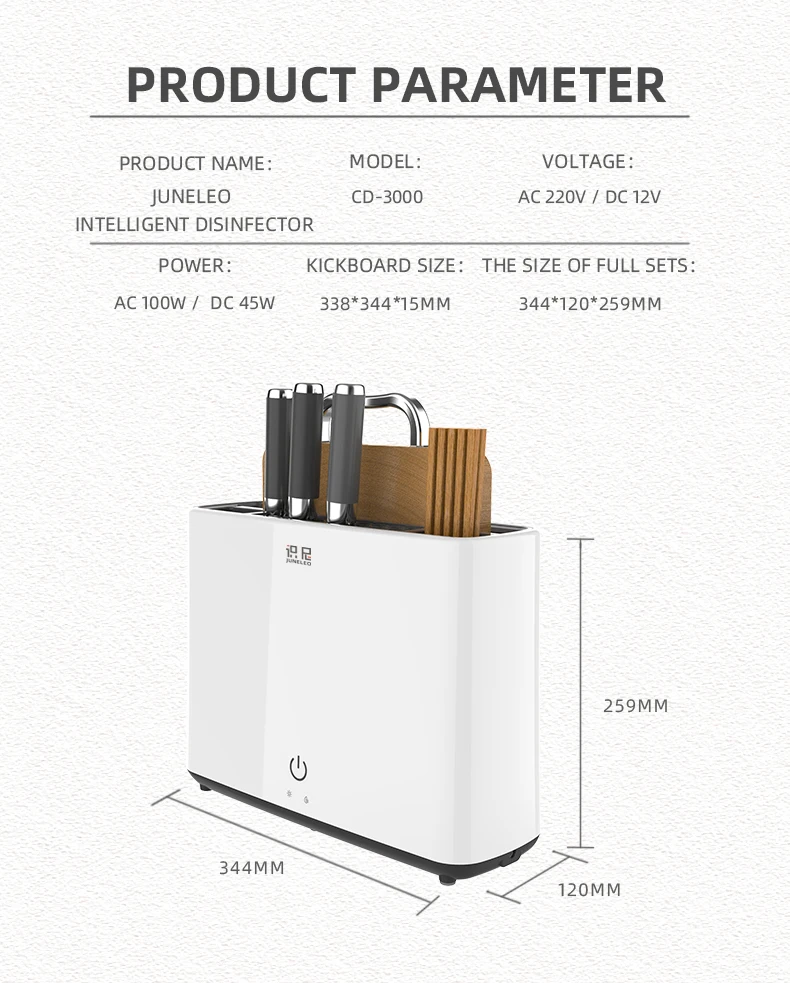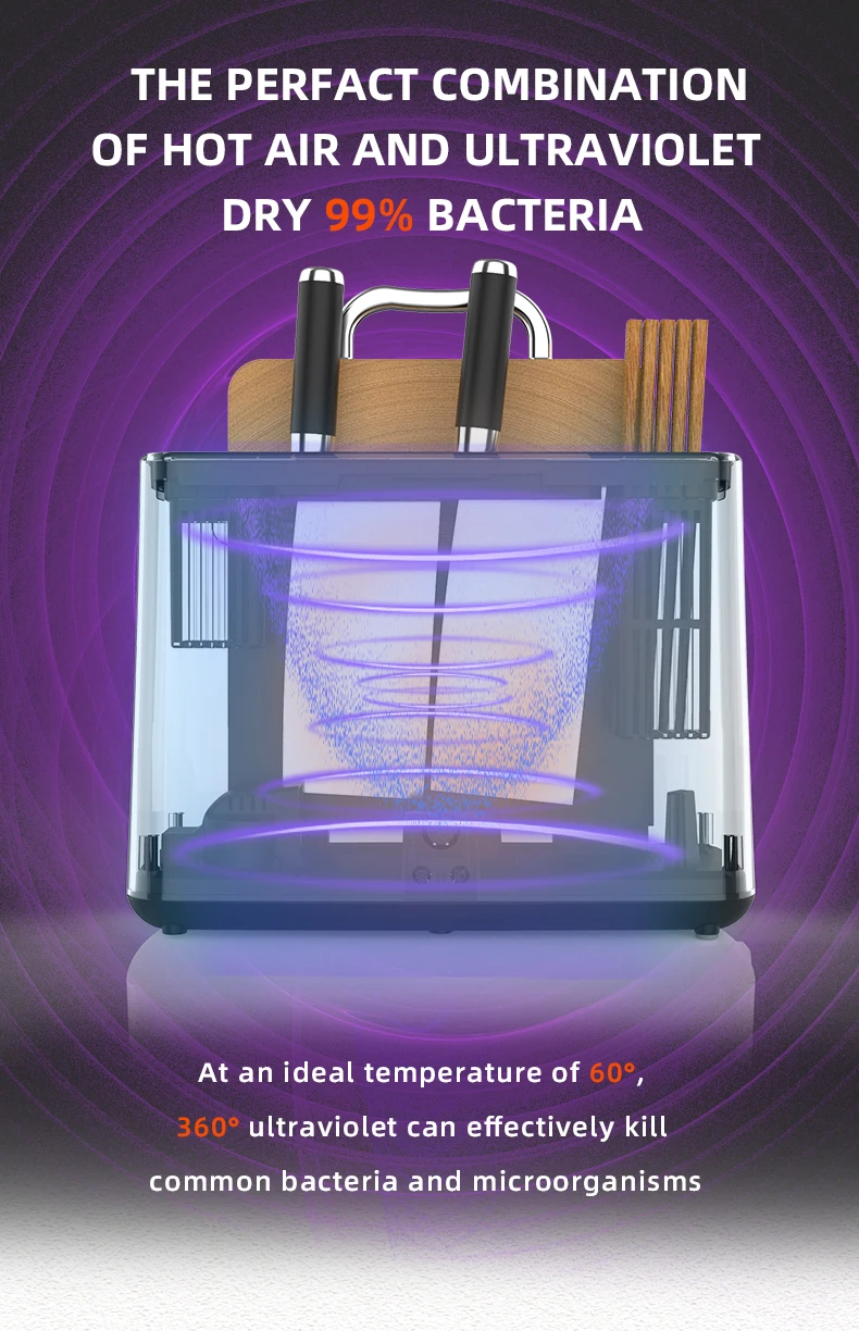 A. Это устройство может стерилизовать и сушить кухонные инструменты, такие как нож, разделочная доска и т. Д. B. Термопластичные и пищевые материалы. C. Ультрафиолетовое облучение и система горячего воздуха для стерилизации. D. Ультрафиолетовое облучение может убить обычные кухонные бактерии, такие как Как Escherichia coli, salmonella и т. Д. Система горячего воздуха может быстро высушить кухонные инструменты и сохранить их санитарно. F. Время стерилизации составляет 50 минут, автоматическое завершение стерилизации. G. Без остаточной воды, система горячего воздуха может быстро высушить кухонные инструменты и остаточную воду.