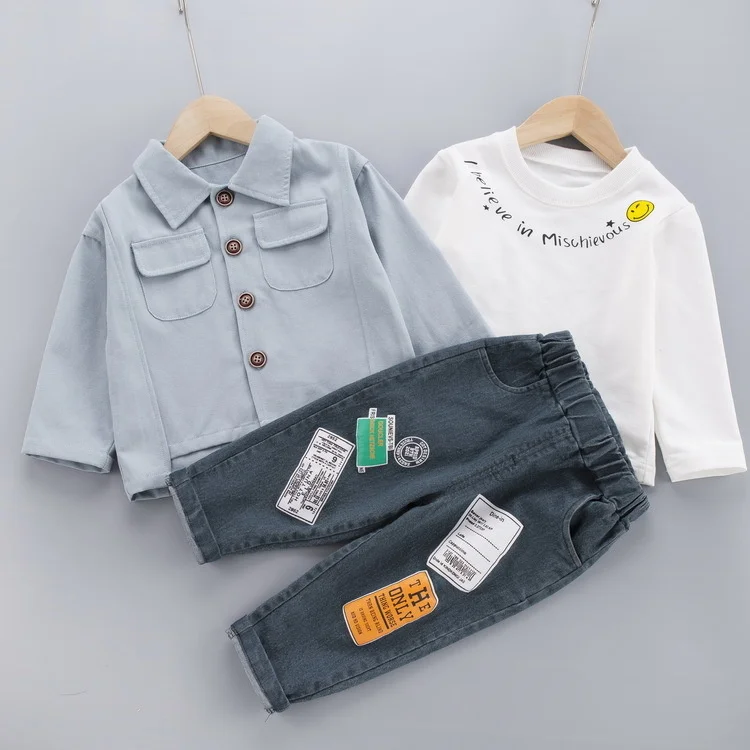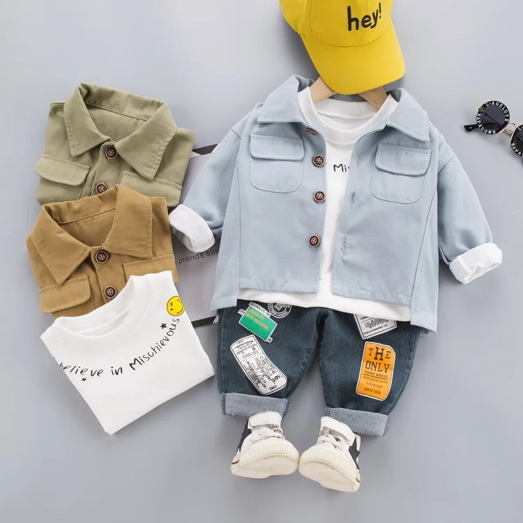 New Spring Autumn Children Clothes Baby Boys Girls Lapel Jacket T Shirt Pants 3Pcs/sets Kids Infant Clothing Toddler Sportswear For 0-4 Years