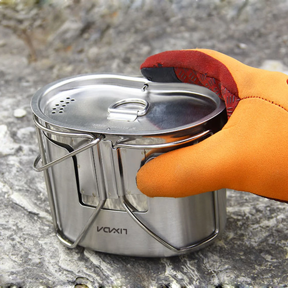 Ручка под залог позволяет легко повесить чашку поверх костра.