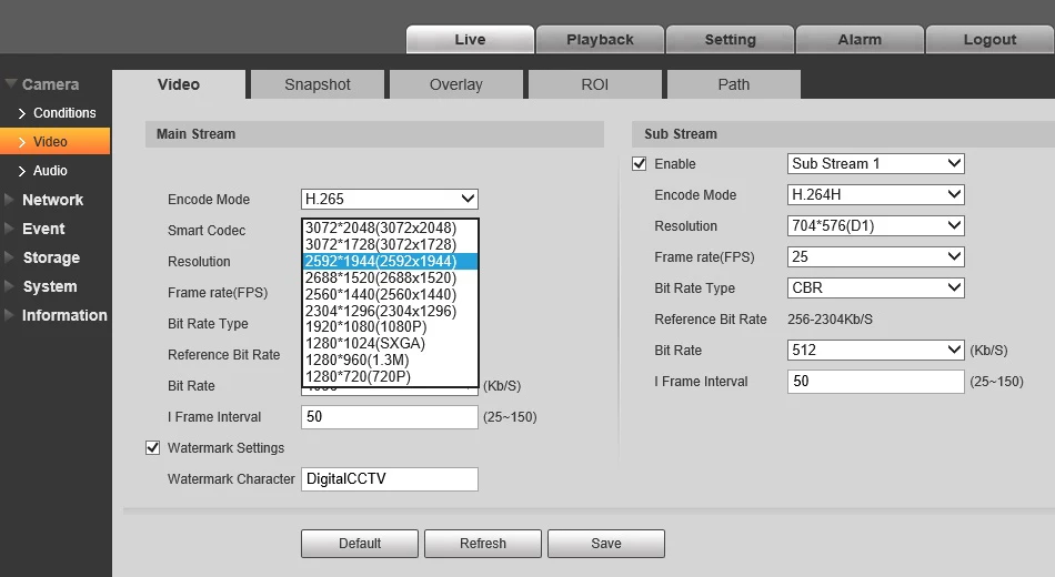 Разрешение: 4M (2688X1520) / 4M (2560X1440) / 1080P (1920X1080) / 720P (1280X720) / D1 (704X576 / 704X480) / CIF (352X288 / 352X240)