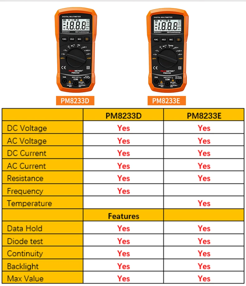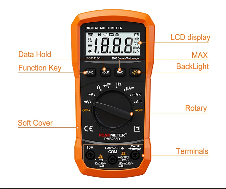 Официальный Peakmeter лучшая низкая цена карманный размер ЖК-дисплей AC DC 2000 отсчетов Авто Диапазон Цифровой мультиметр Серии PM8233 Батарея в комплект не входит