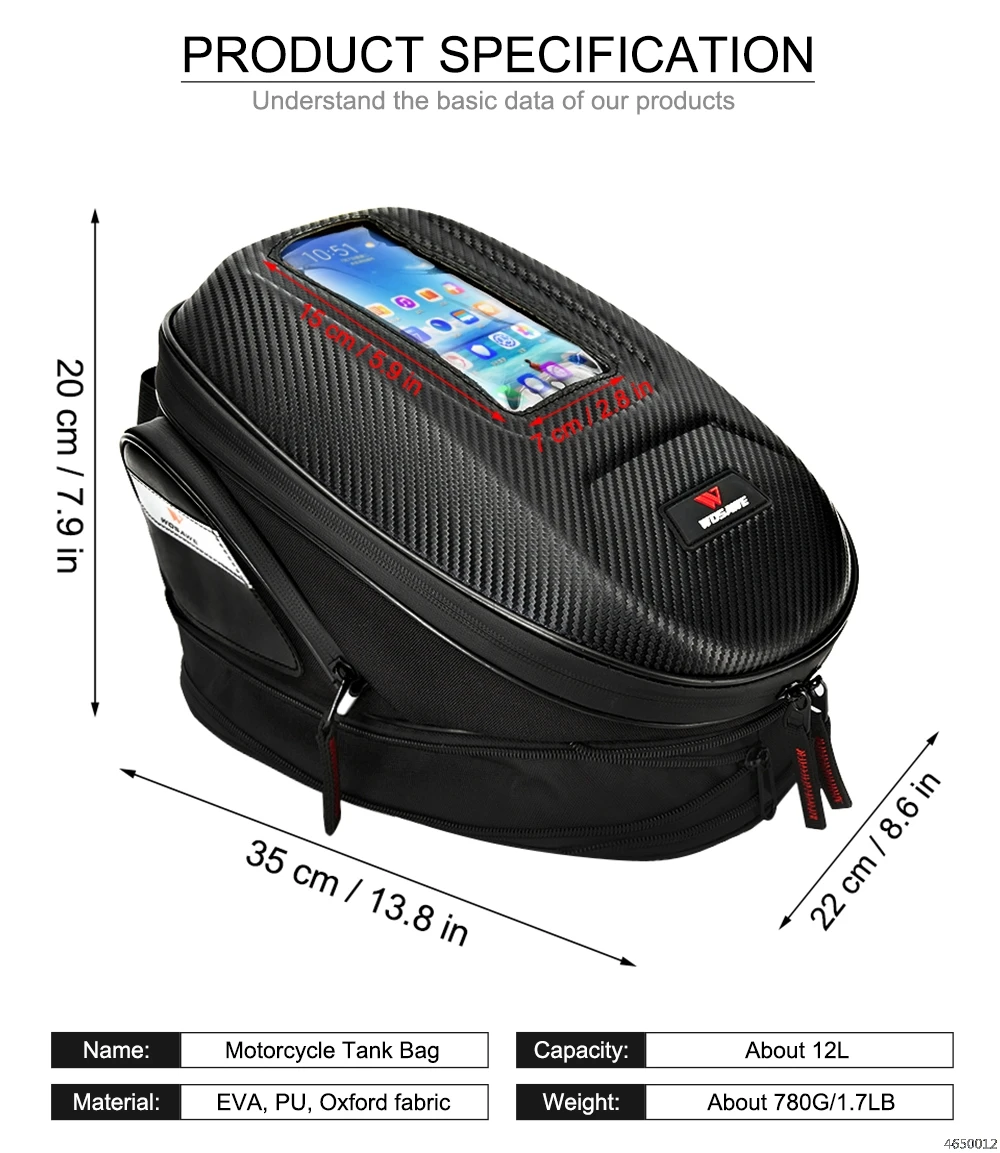 Эта сумка-бак для мотоцикла сделана из жесткой оболочки EVA, водонепроницаемой ткани и из искусственной кожи,