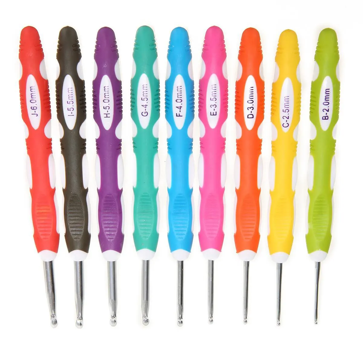9 шт новых транспортных средств с разными Цвет Пластик Алюминий крючки для вязания пряжа Вязание иглы Ремесло Набор 2/2.5/3/3.5/4/4.5/5/5.5/6 мм крючком РазмерыUS $12,15
