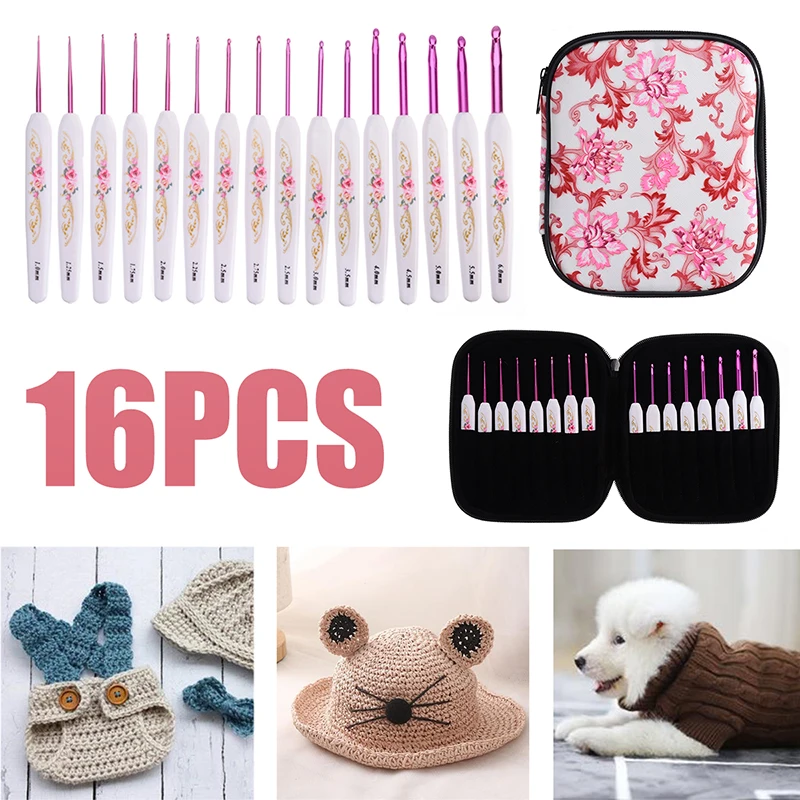 16 шт Новый мягкий набор крючков для вязания крючком ручка алюминиевая 1,0 ~ 6,0 мм для вязания вплетать в пряжу спицыUS $15,97