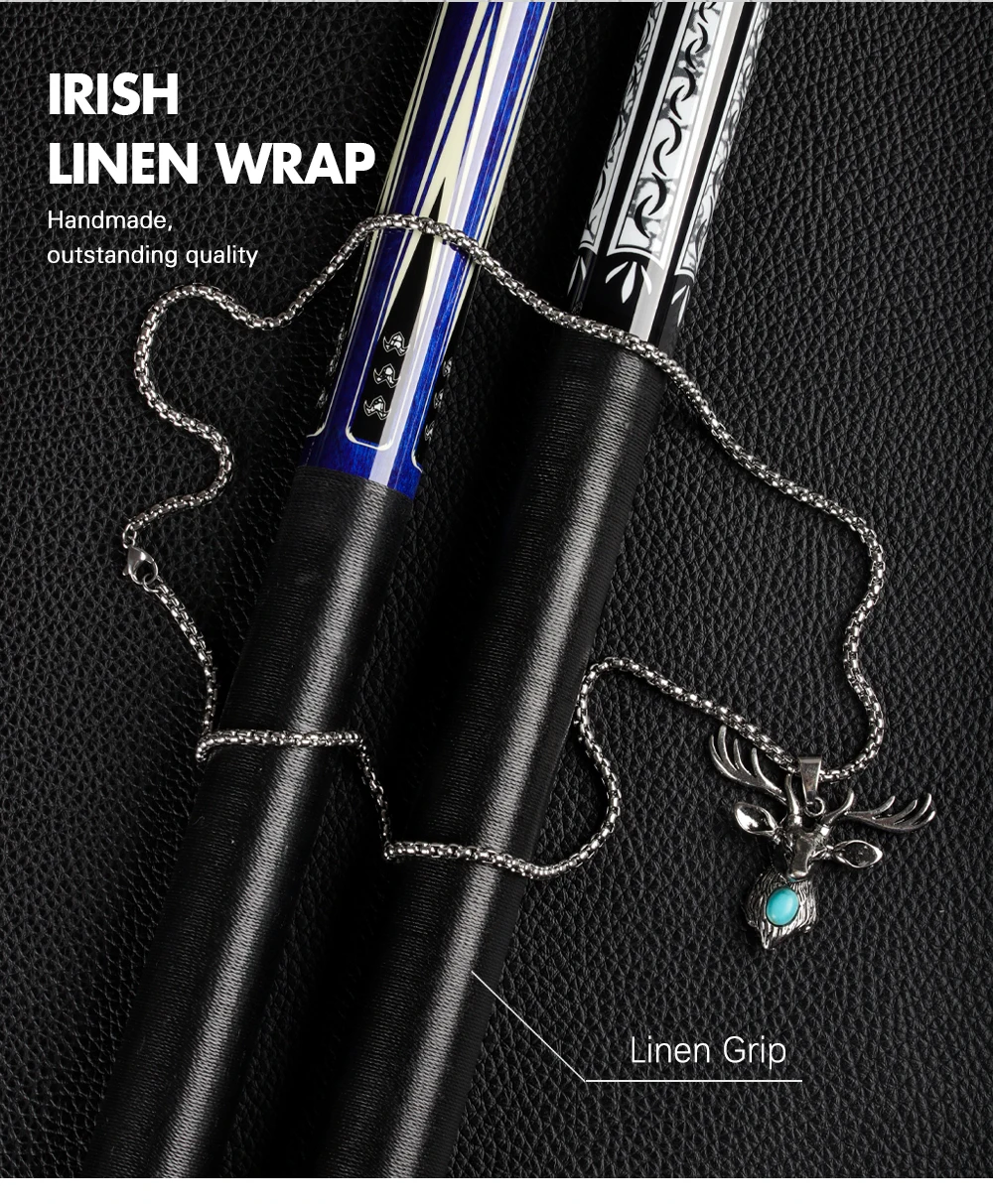 Тип: бильярдный кий Наименование: KA-1/2 Обертка: ручная работа, Ирландская льняная обертка Вал: импортный североамериканский твердый клен Приклад: уникальный дизайн Совет: черный огнеупорный наконечник Наконечник: XTC-Ferrule Соединение: 18 зубьев Длина: 147 см Вес: 19-20 унций