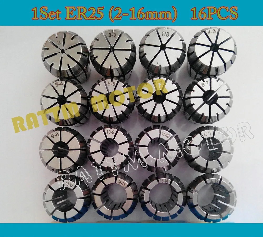 1 Set of ER25 Spring Collets (16pcs,2mm-16mm)