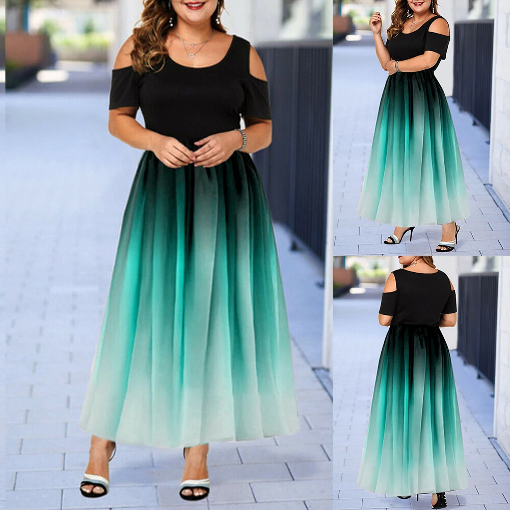 Женские Длинные вечерние платья с круглым вырезом и градиентным принтом на плечах размера плюс