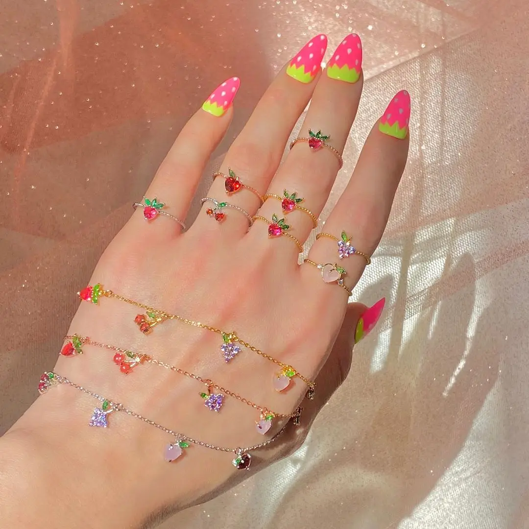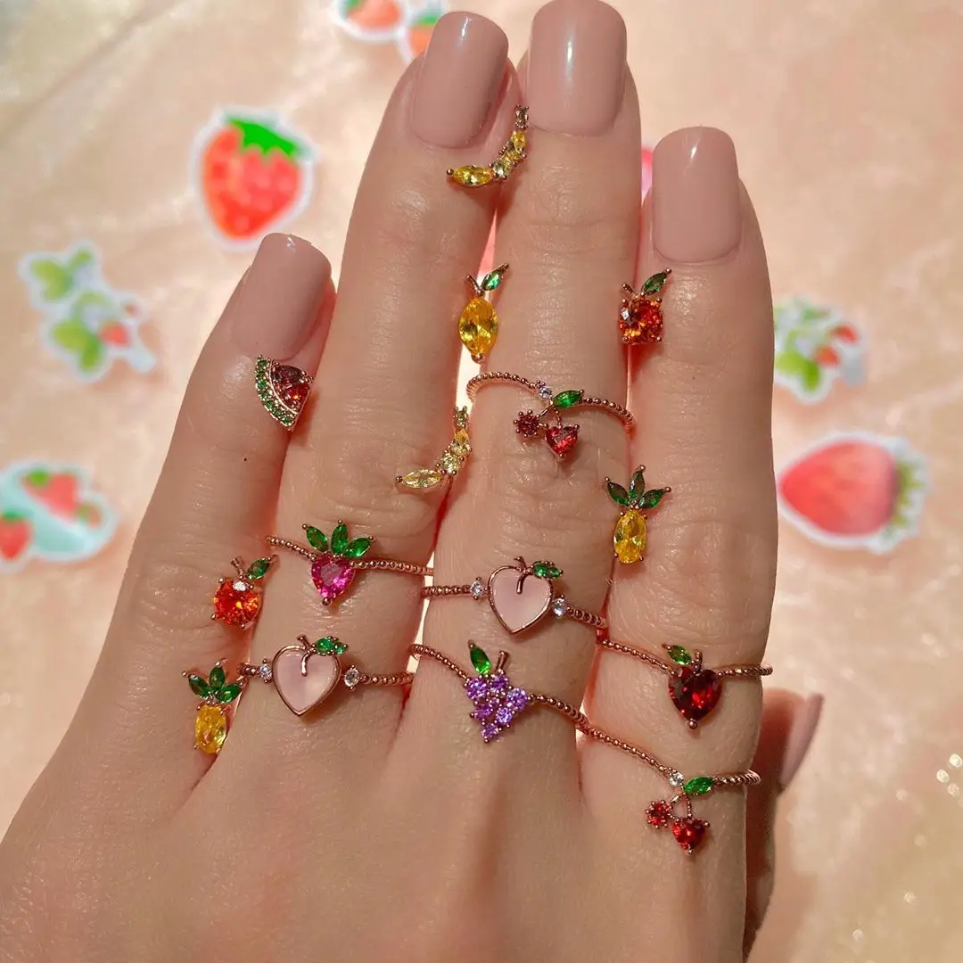 Новинка 2020, модное женское ювелирное изделие золотого цвета, изысканное яблоко, вишня, клубника, фруктовое кольцо