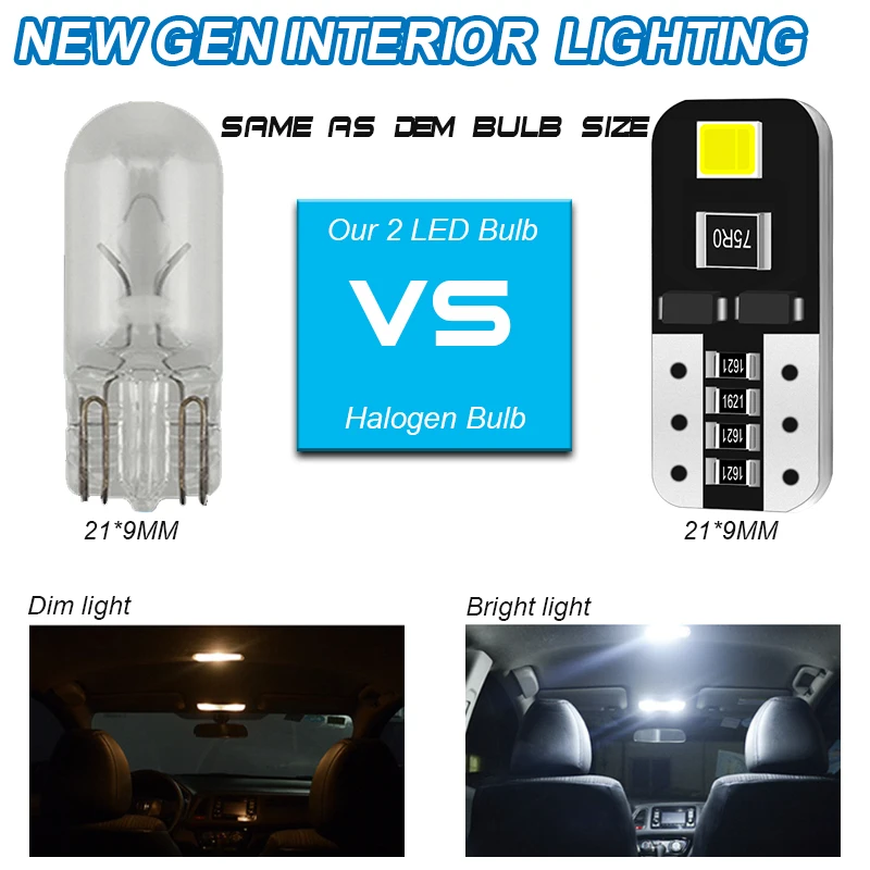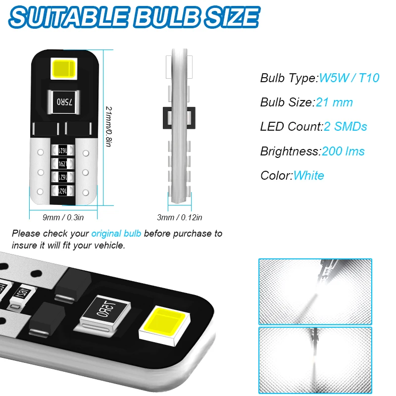 Wholesale 10/20/50 Pcs T10 W5W LED Bulbs 12V 6000K For License Plate Lights Rear Side Marker Lights Parking Lights Taillight