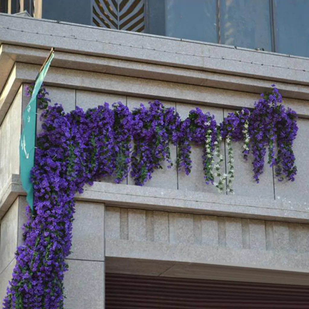 Hanging Flowers Artificial Violet Flower Wall Wisteria Basket Hanging Garland Vine Flowers Fake Silk Orchid