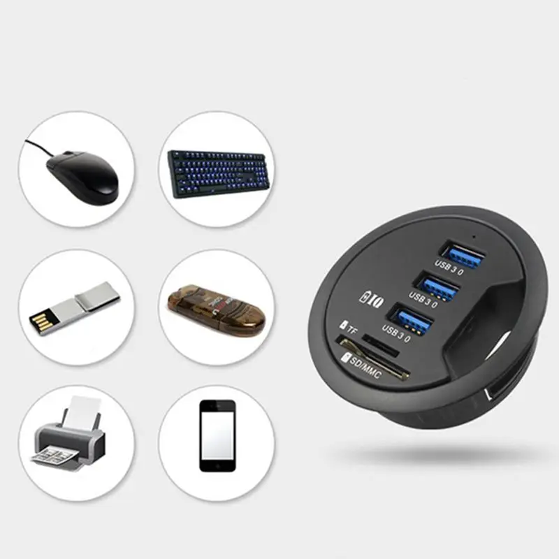 USB3.0 концентратор 3, Считывание данных/зарядка комбо; Расширение картридера SD / MMC / TF; Офисная, домашняя установка с круглым отверстием