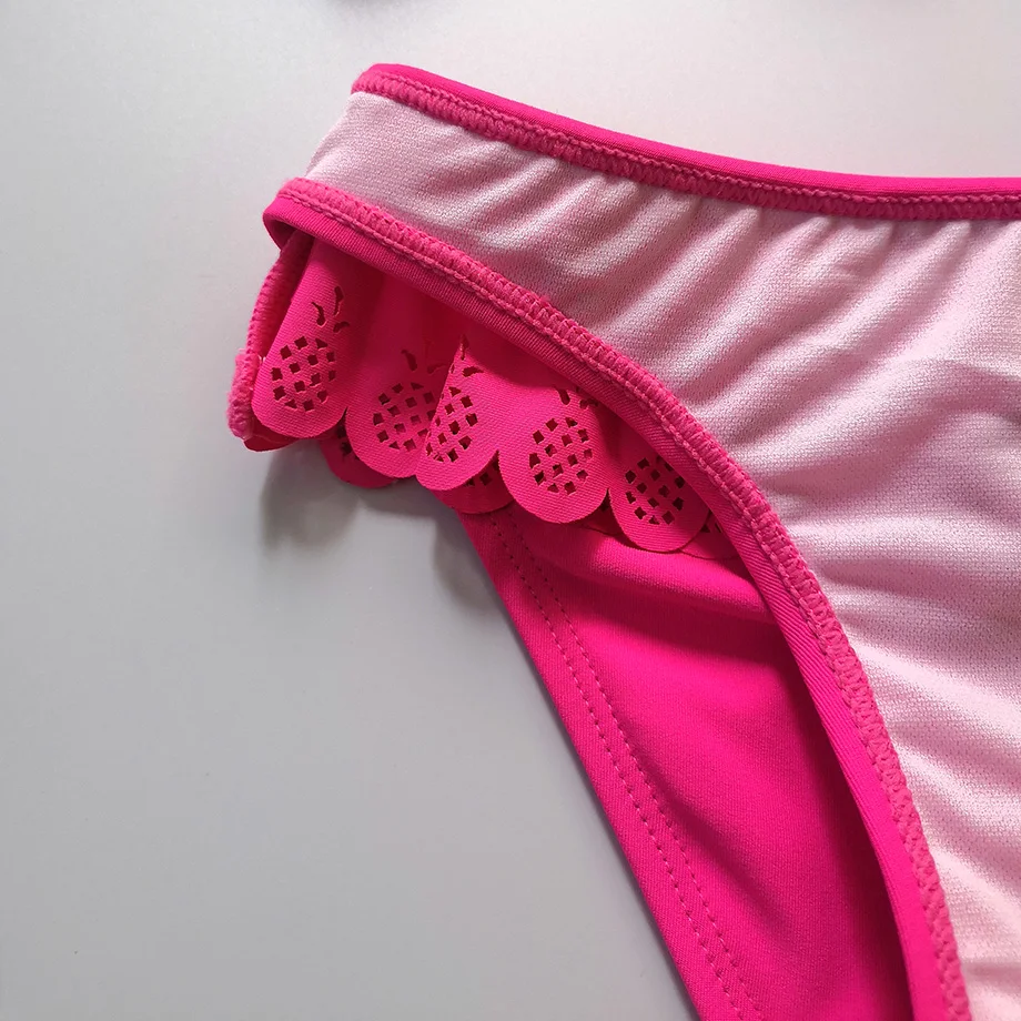 Купальник для девочек-подростков с вырезами и оборками, комплект бикини из 2 предметов, купальный костюм для девочек-подростков, пляжная одежда, От 7 до 14 лет