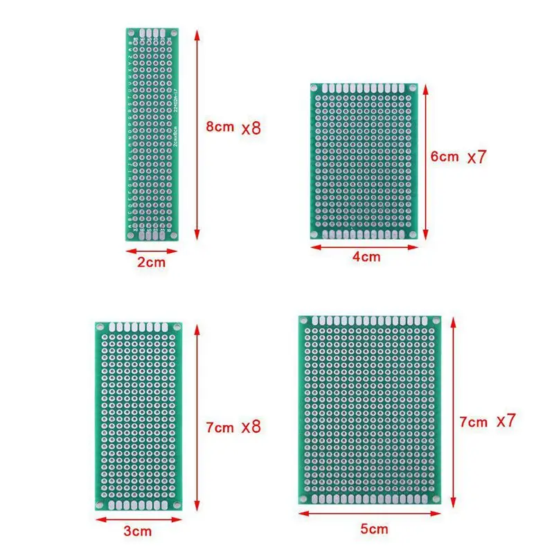 Печатная плата: 30 шт. двухсторонние печатные платы прототипа в 4 различных размерах, 8 шт. 2*8 см, 8 шт. 3*7 см, 7 шт. 4*6 см и 7 шт. 5*7 см печатные платы