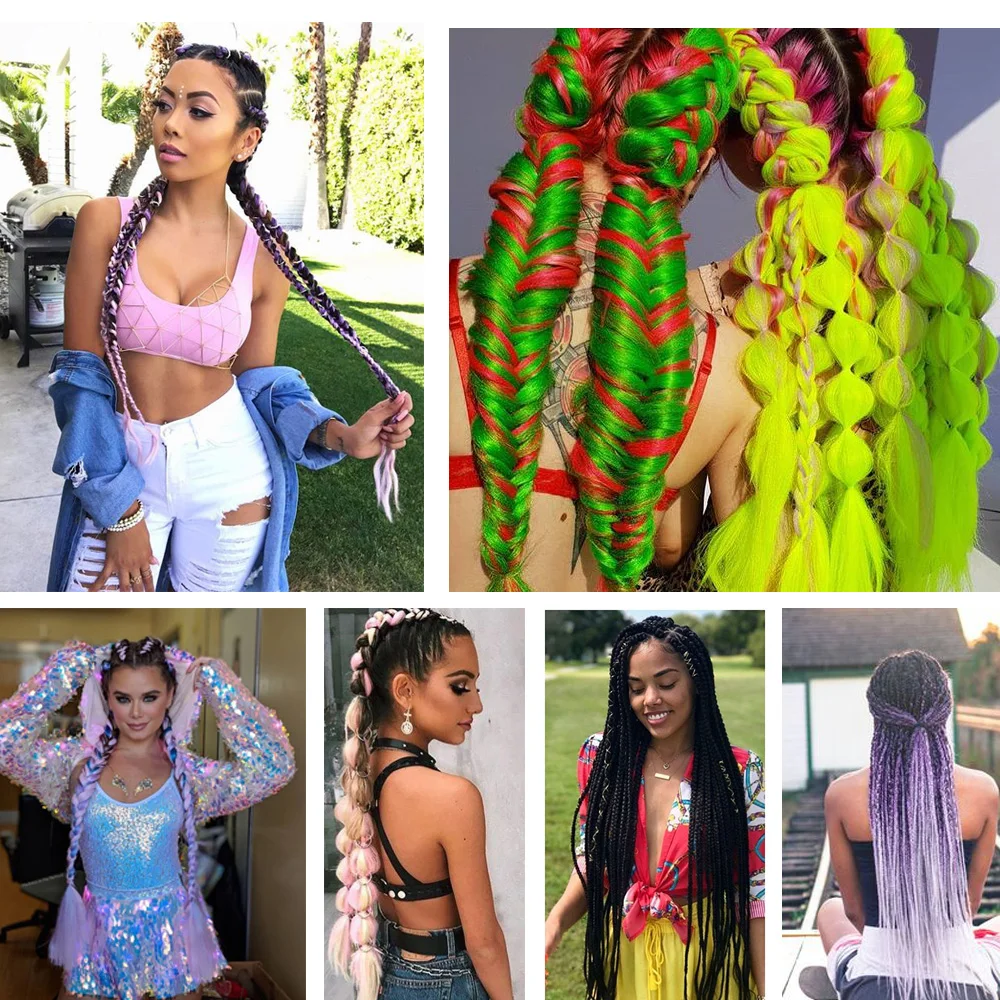 XINRAN розового и фиолетового цветов Голубой Белый Цвет большие синтетические косы