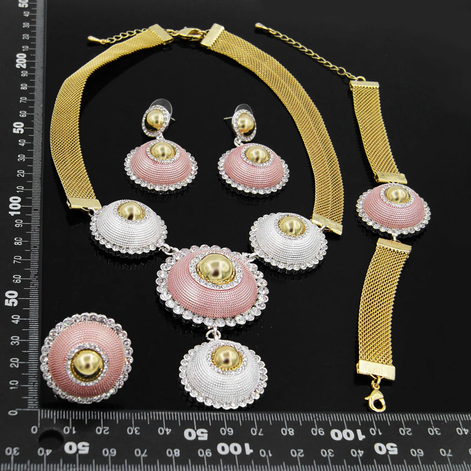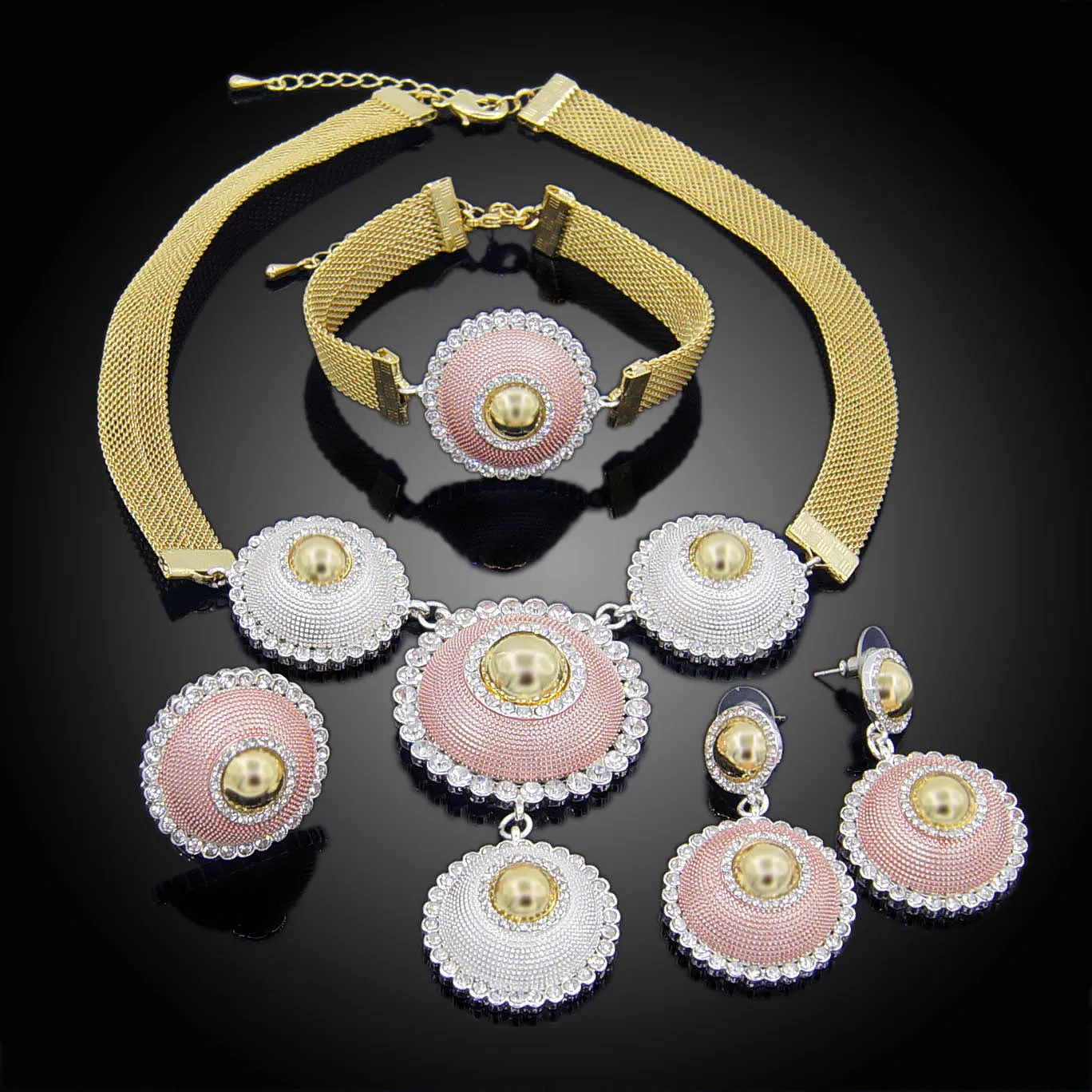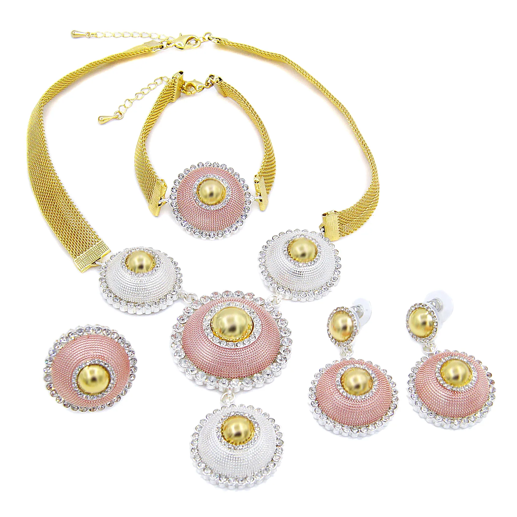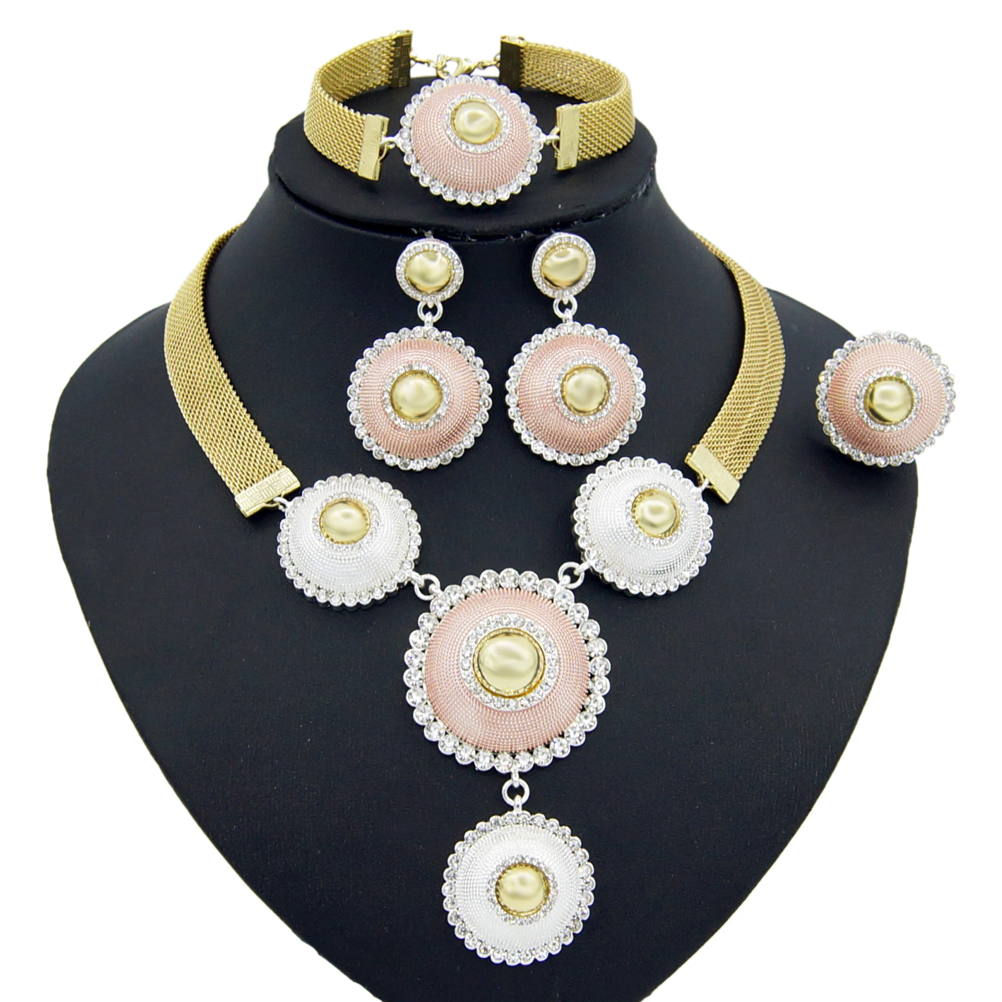 Yulaili модное Золотое триколор ожерелье серьги браслет кольцо для женщин вечерние свадебные наборы ювелирных изделий оптовая продажа