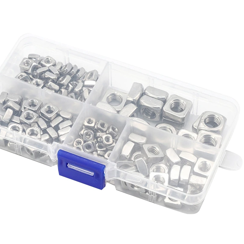 1. [квадратные гайки Ассорти]: квадратная гайка-это четырехсторонняя гайка. По сравнению со стандартными шестигранными гайками, квадратные гайки имеют большую поверхность, которая соприкасается с крепежной частью, и, следовательно, обеспечивают большую устойчивость к ослаблению (хотя и большее сопротивление затягиванию)