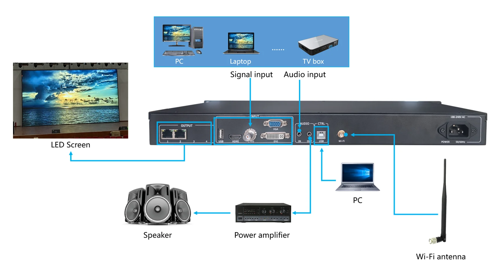 5). Integrated the function of sending card and two Gigabit Network output.