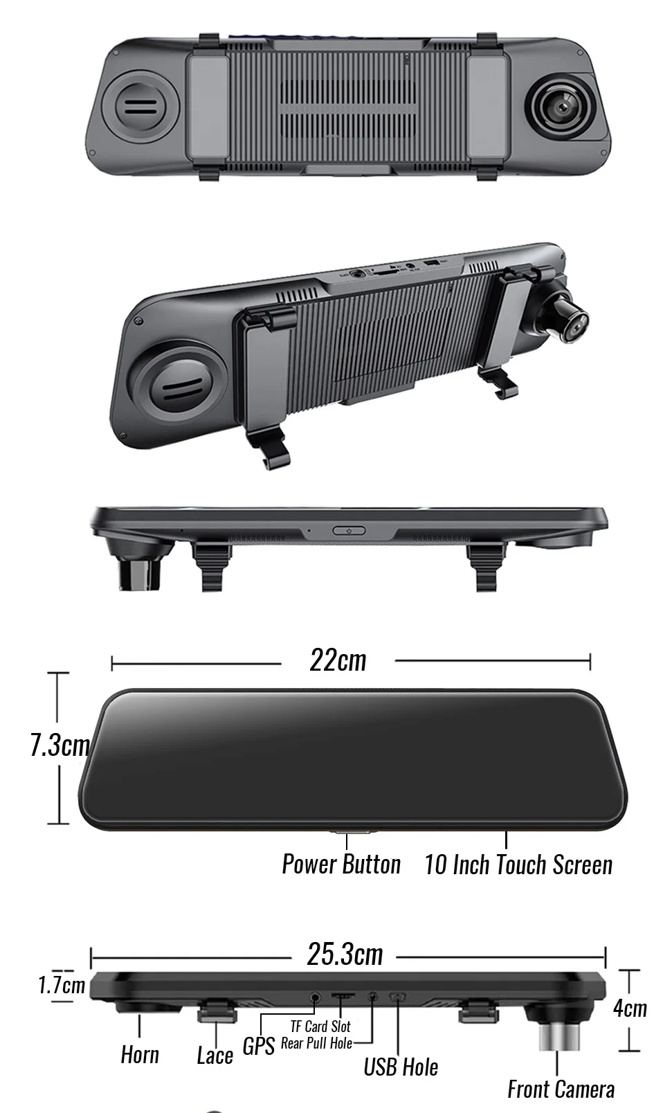 Зарядное устройство в прикуриватель для питания автомобильного видеорегистратора. Когда вы получите свой автомобиль в обратном направлении, Автомобильный видеорегистратор автоматически переключается на заднюю камеру с помощью линии парковки. Тогда функция автоматического заднего хода будет работать