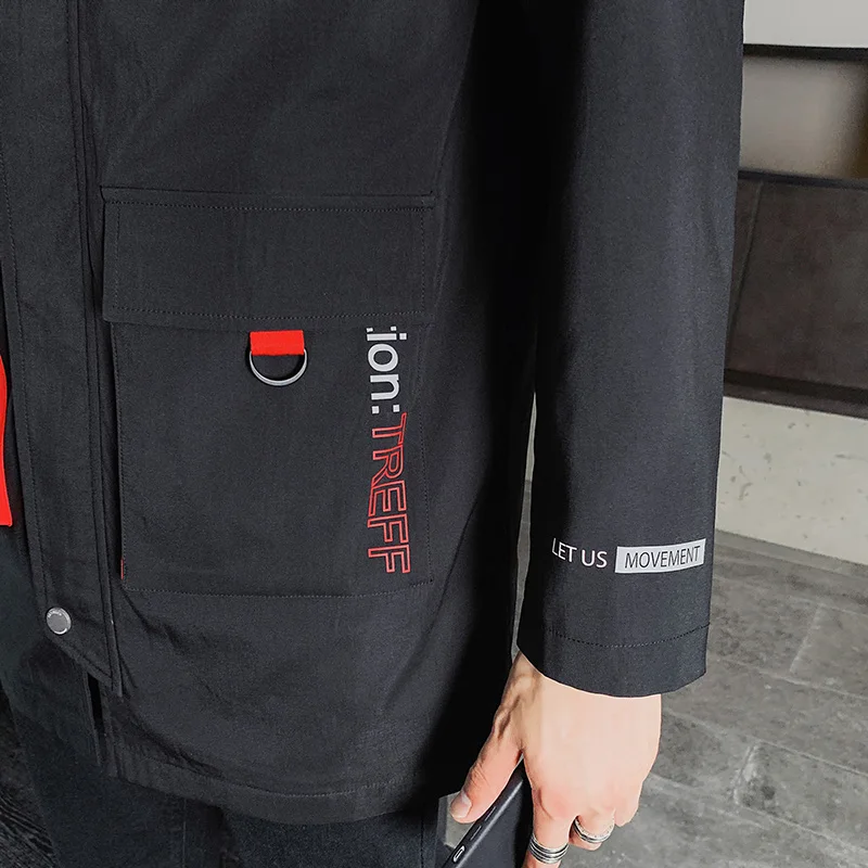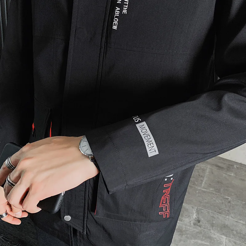 Бомбер мужской на молнии Повседневная приталенная куртка с длинным рукавом