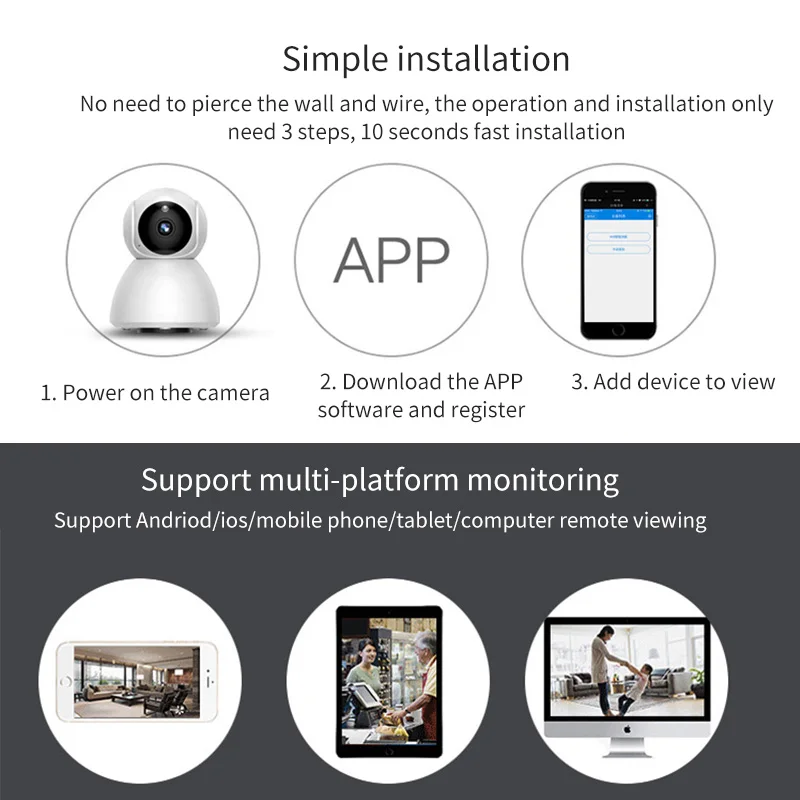 Двухстороннее аудио, вы можете поговорить друг с другом через камеру и телефон.