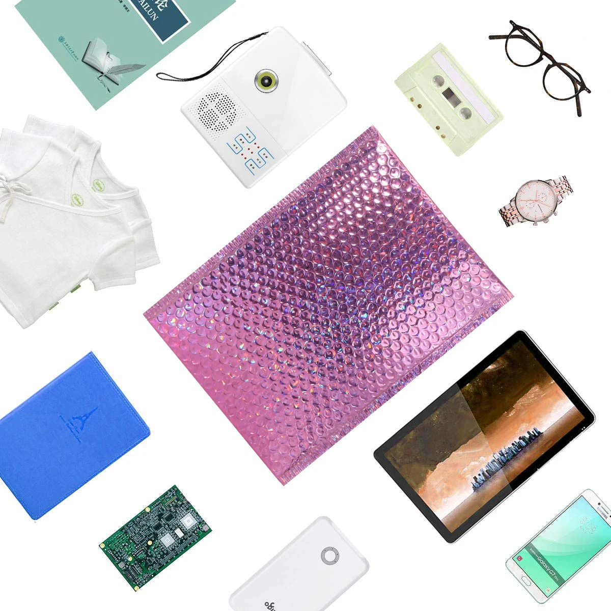 Эти упаковочные конверты обеспечивают беспроблемную доставку с их несколькими функциями безопасности. Застежка peel-n-seal создает воздухонепроницаемую отделку, предотвращающую выскальзывание содержимого и нежелательные виды изделия внутри. Усиленная амортизирующая подкладка защищает внутреннее пространство от повреждающих сил в процессе пересылки. Сделайте вашу доставку запоминающейся с помощью почтовых отправлений Holo blink.