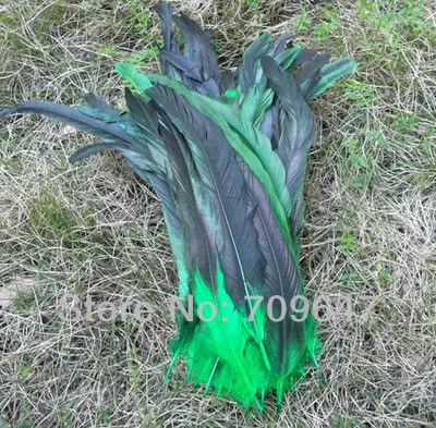 Зеленые перья! 50 шт./лот! 10-12 "25-30 см зеленый цвет барсук садле петух хвост перья, свободные Куриные перья,